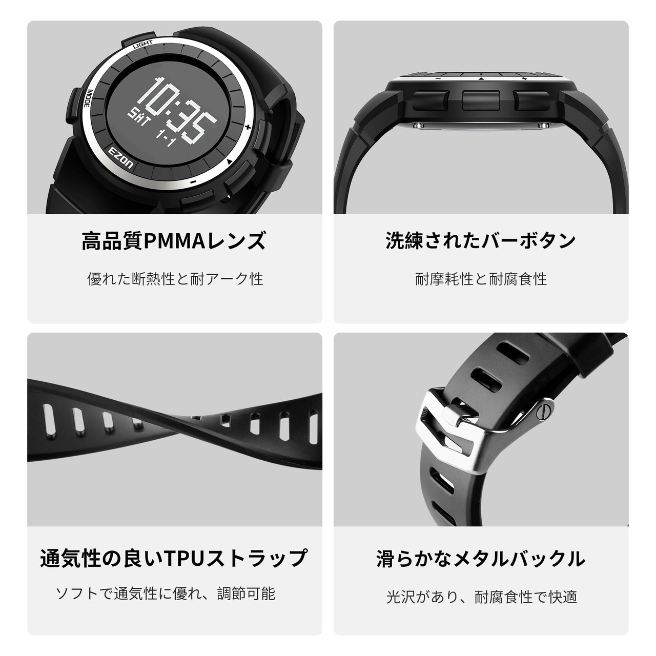 ランニングウォッチ スポーツウォッチ 歩数計 軽量 IP67防水防塵 大盤面表示 メンズウォッチ EZON