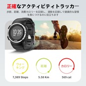 ●歩数計機能搭載:日常の歩数を正確にカウントし、自己管理を助けます。目標達成のためのモチベーション向上にも貢献します!