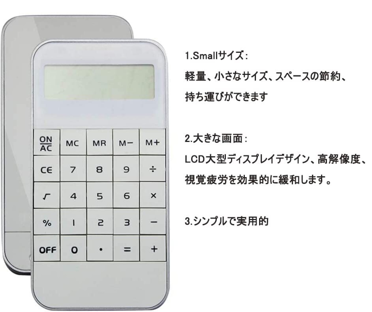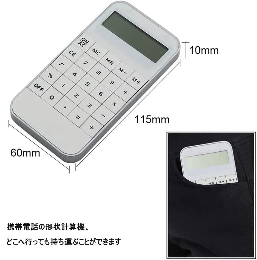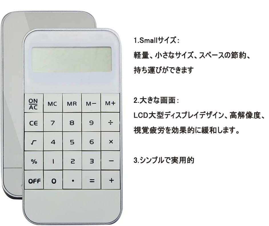 携帯電話の形状、小型(ハンディサイズ)&クリエイティブ電卓。コンパクトサイズ、軽量、持ち運びが簡単。 サイズ(L * W * T): 約11.3 x 5.6 x 1.0cm。