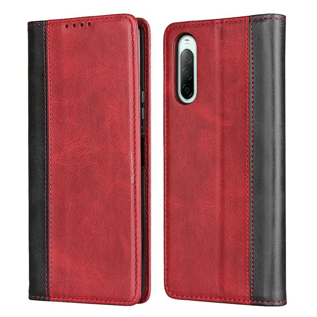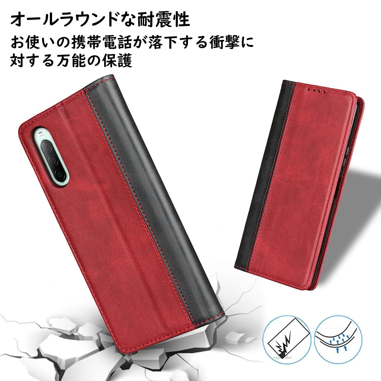 Havaya 対応 SO-41A ケース Xperia10II ケース SOV43 ケース 手帳型 耐衝撃 au ソニー エクスペリア10ii カバー 第2世代 docomo a001so 楽天モバイル ワイモバイル SoftBank マグネット式 カード収納 レザー-レッド+ブラック