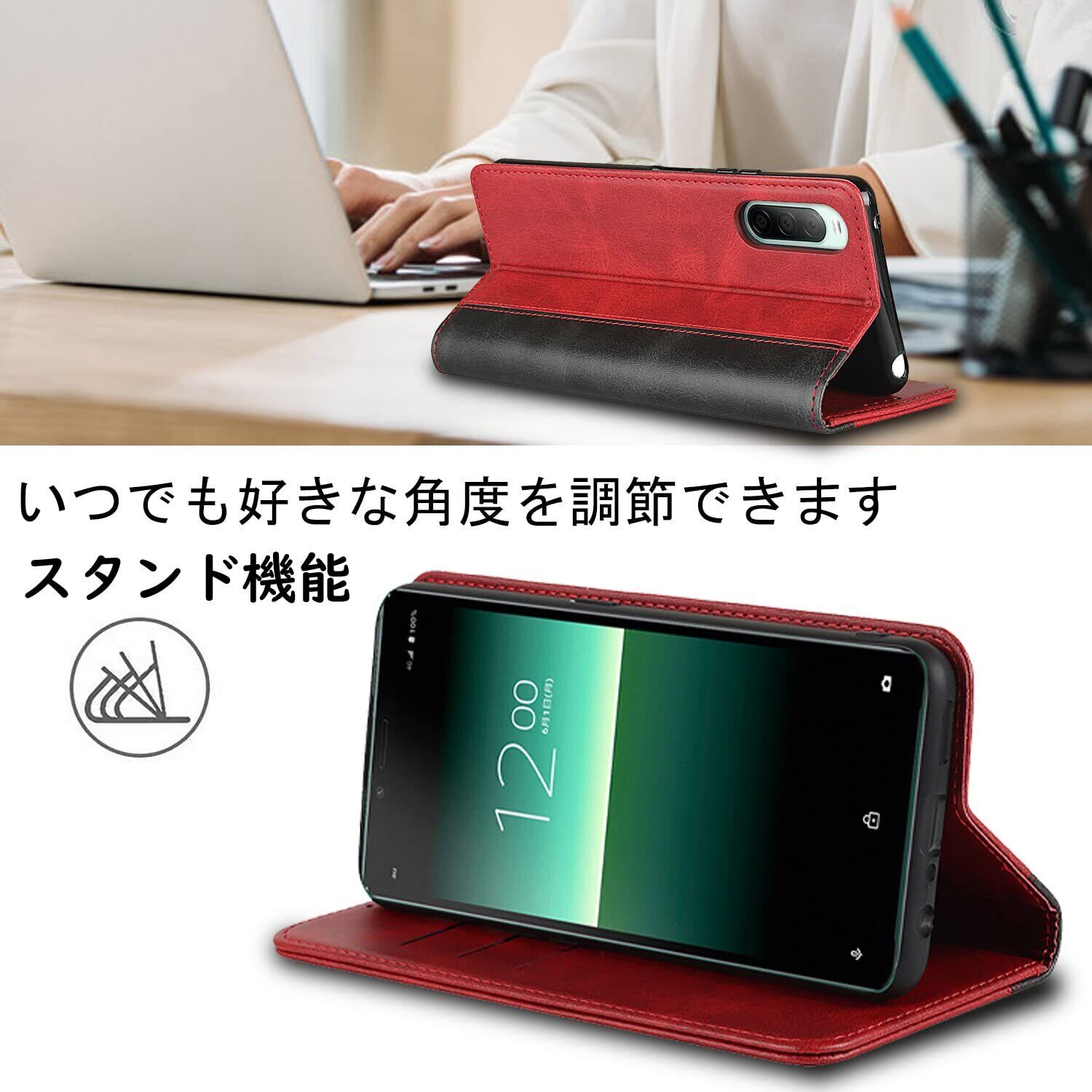 Havaya 対応 SO-41A ケース Xperia10II ケース SOV43 ケース 手帳型 耐衝撃 au ソニー エクスペリア10ii カバー 第2世代 docomo a001so 楽天モバイル ワイモバイル SoftBank マグネット式 カード収納 レザー-レッド+ブラック | impsmile