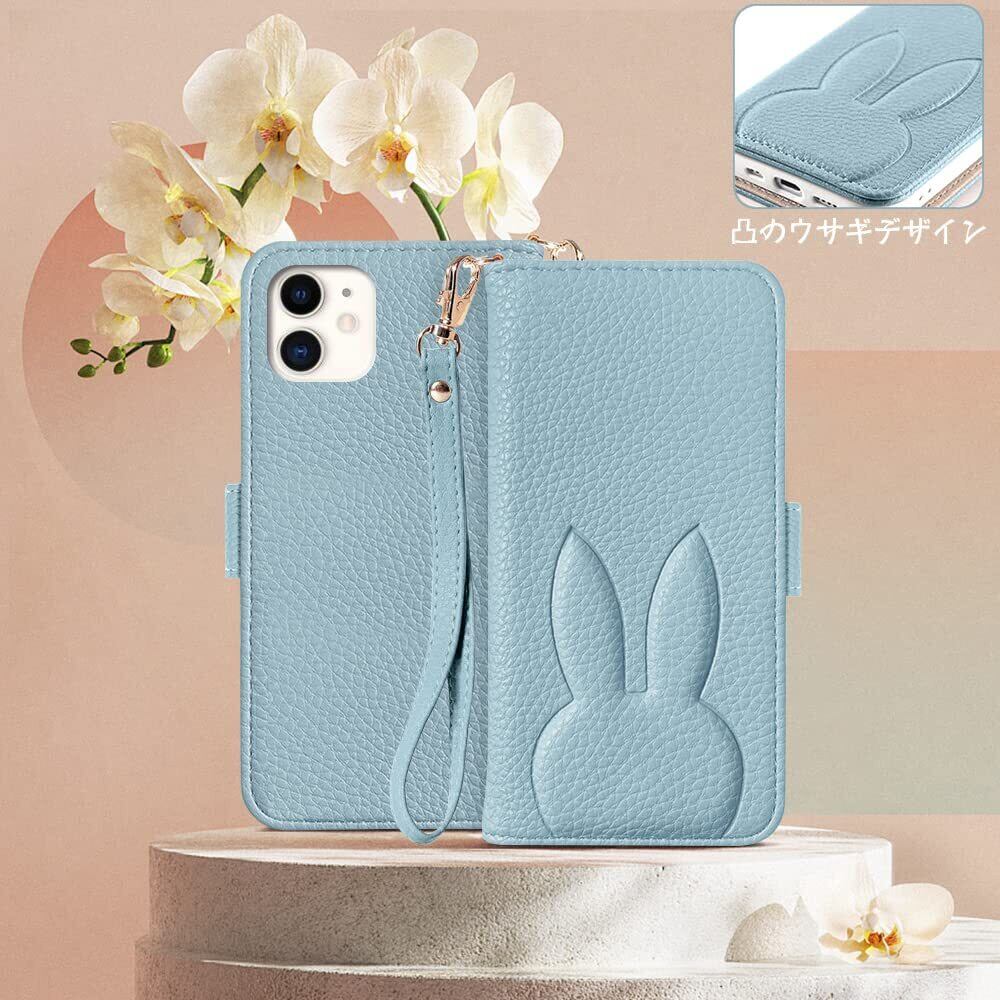 iPhone 12 mini ケース 手帳型 おしゃれ iPhone12 mini 手帳型 ケース人気 女性 可愛い スマホカバー かわいい iphone12ミニ ケース 手帳型 レディース どうぶつ 兎 ストラップ付き アイフォン12mini ケース手帳型 カード収納 アイフォン12ミニ ケース 財布型 高級PUレザー 横置き機能 落ち着いた色 5.4 inch,ライトブルー