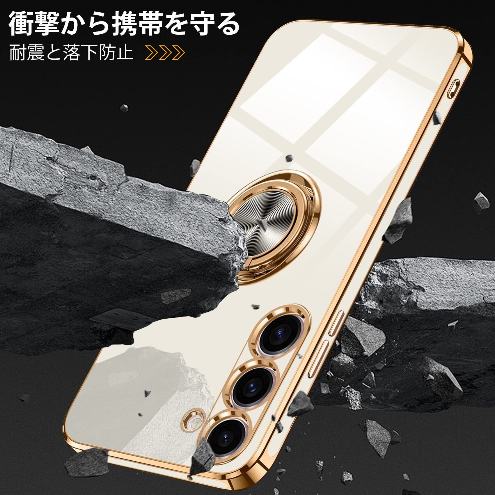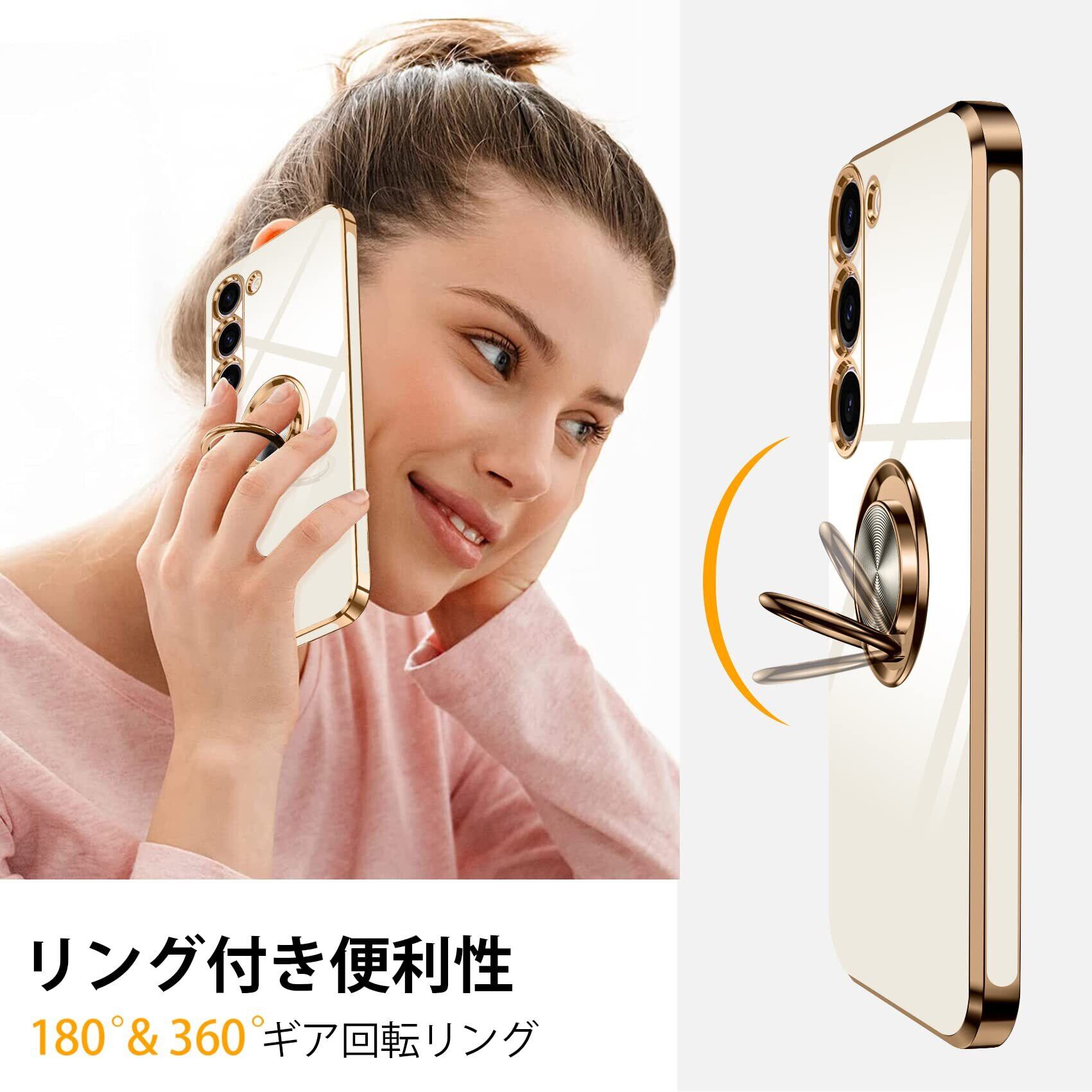 Galaxy S22 ケース リング 耐衝撃 レンズ保護 軽量 Samsung ギャラクシー S22 / SC-51C / SCG13 カバー メッキ加工 ソフトケース スタンド機能 車載ホルダー 対応 サラサラ触り心地 6.1インチ 白 MZ85-04 | impsmile
