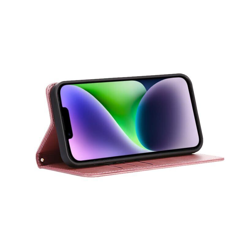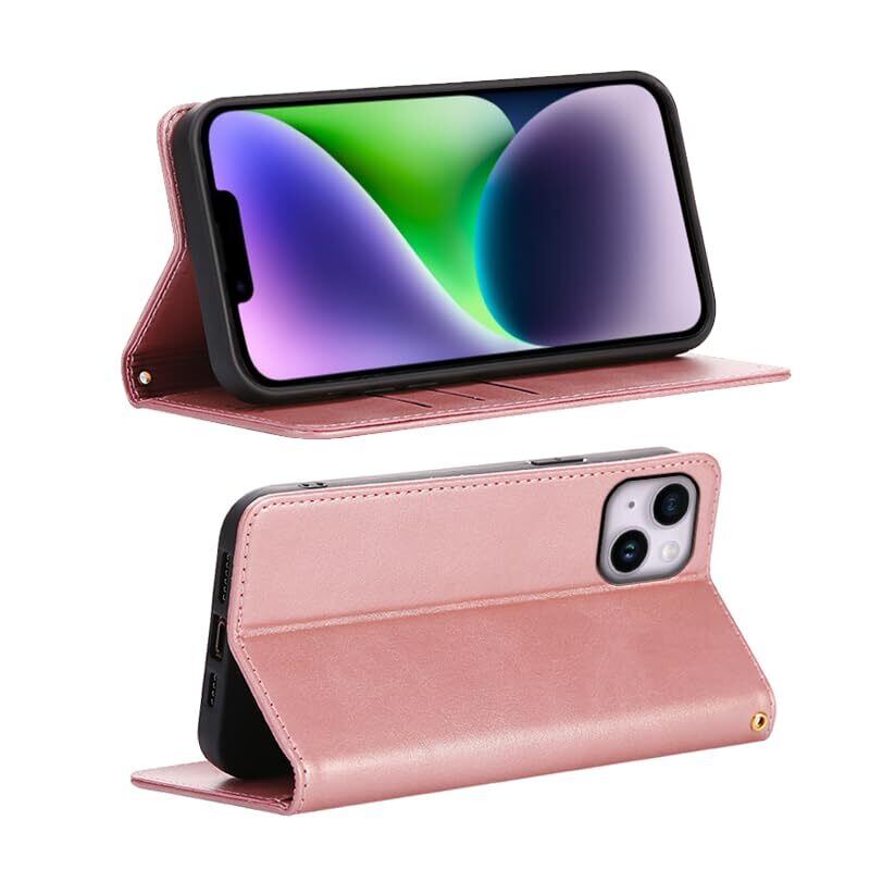 【スタイリッシュにiPhone 14を守る!手帳型ケース】この「iPhone 14用手帳型ケース」は、ライトローズゴールドの華やかな色合いが魅力の一品です。高品質なPUレザーを使用し、あなたのiPhone 14をおしゃれに保護します!