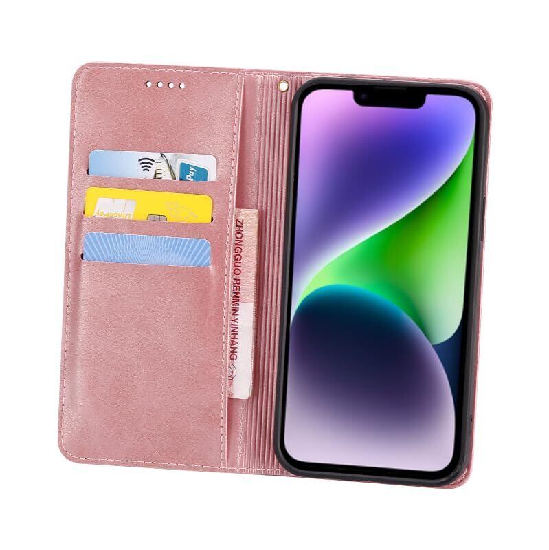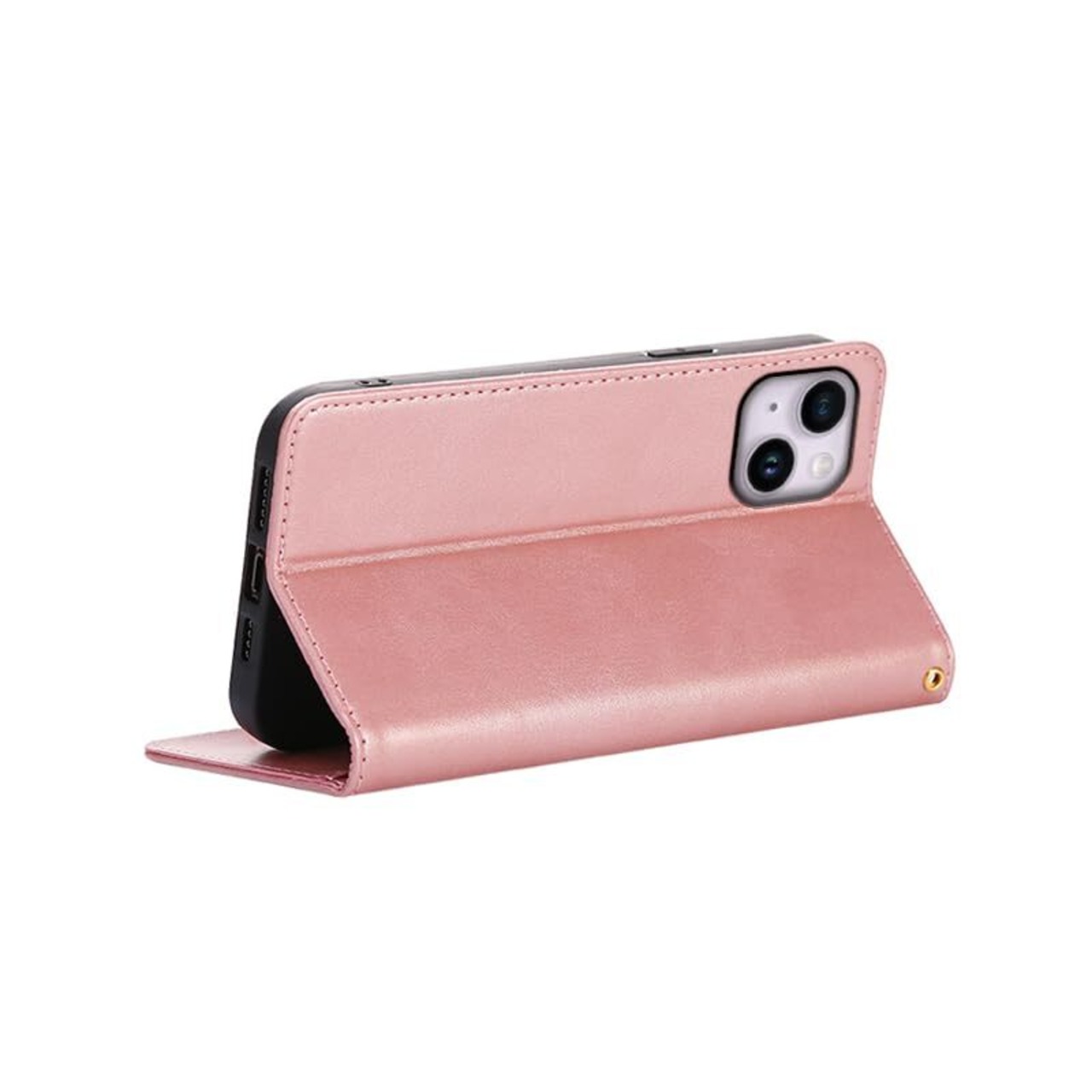 適用 iPhone 14 ケース 手帳型 iPhone14 用 手帳型 ケース カバー PUレザー カード収納 財布型 耐衝撃 ケース マグネット スタンド機能付き 5色 (ライトローズゴールド)