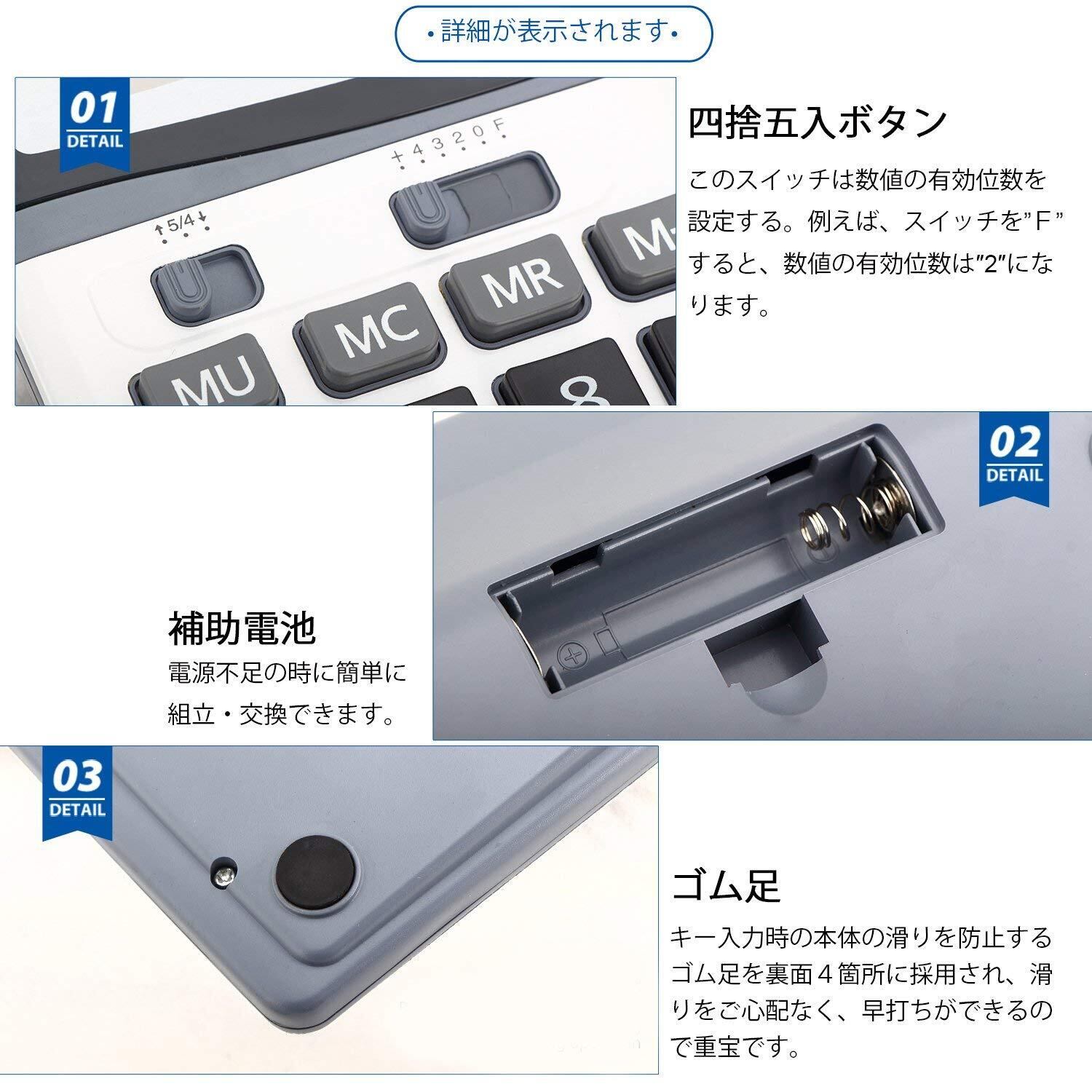 機能: 12桁の大型ディスプレイで視認性良好