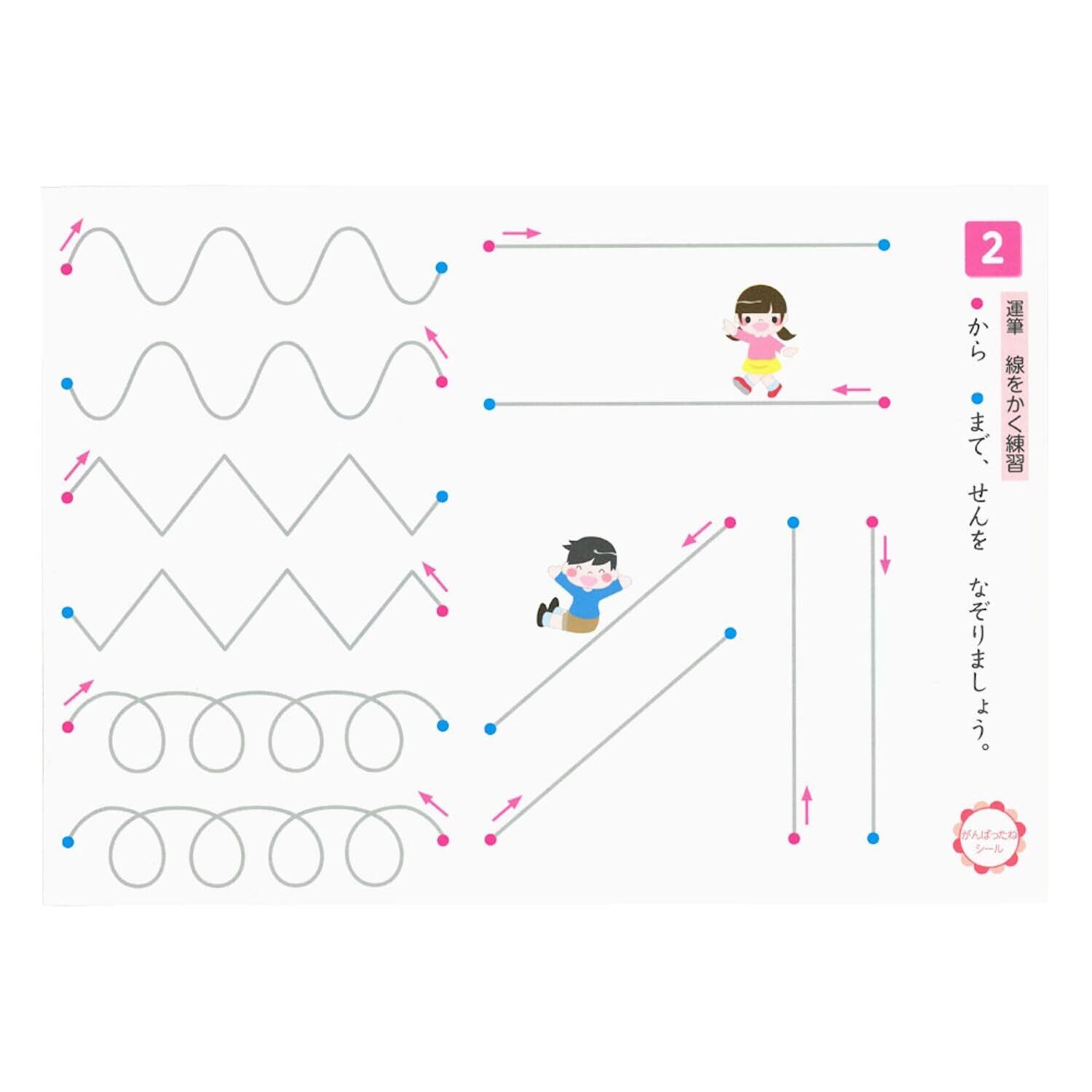 ひらがな:書きやすい1画の字から練習。ひらがなの総合的読み書き学習。