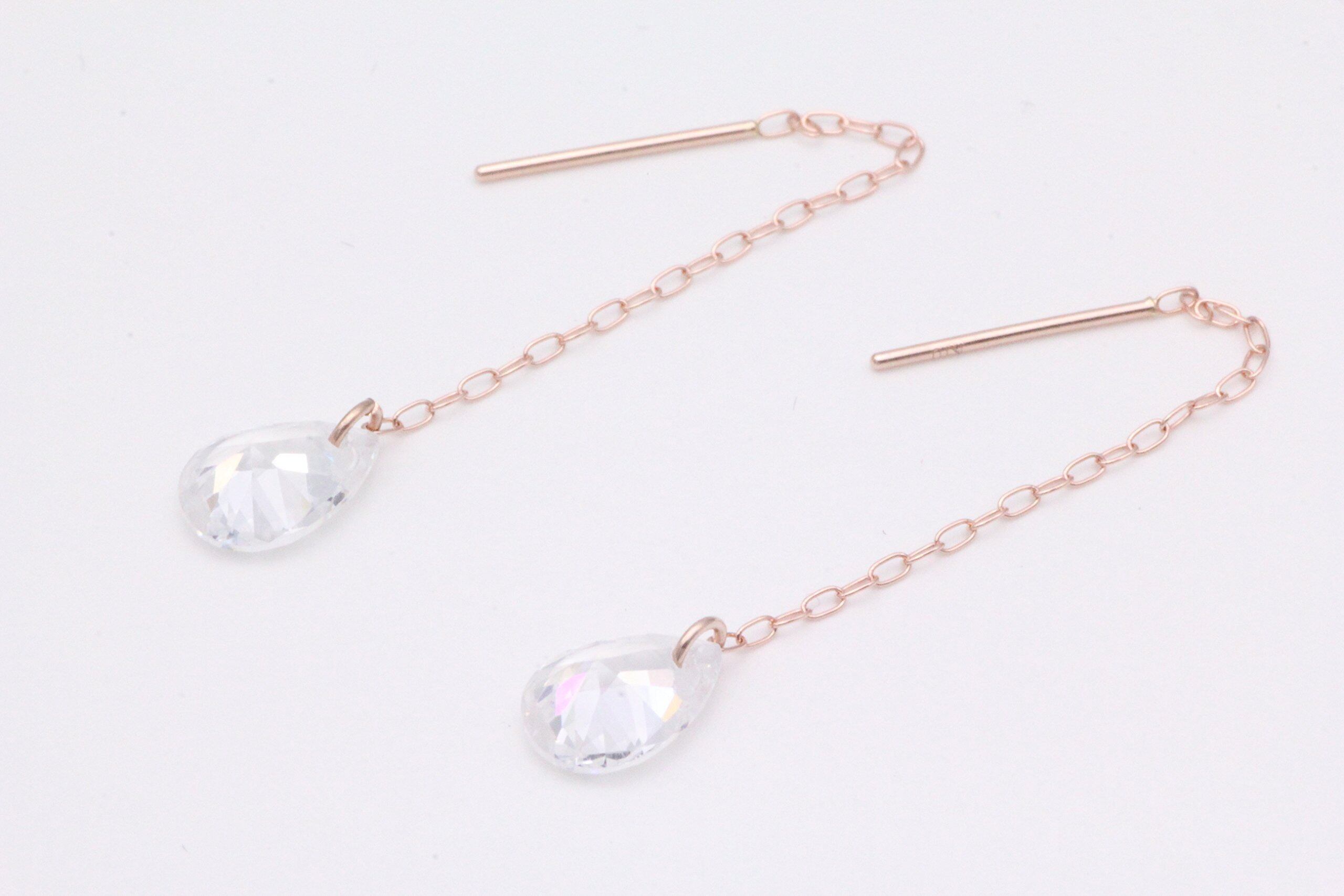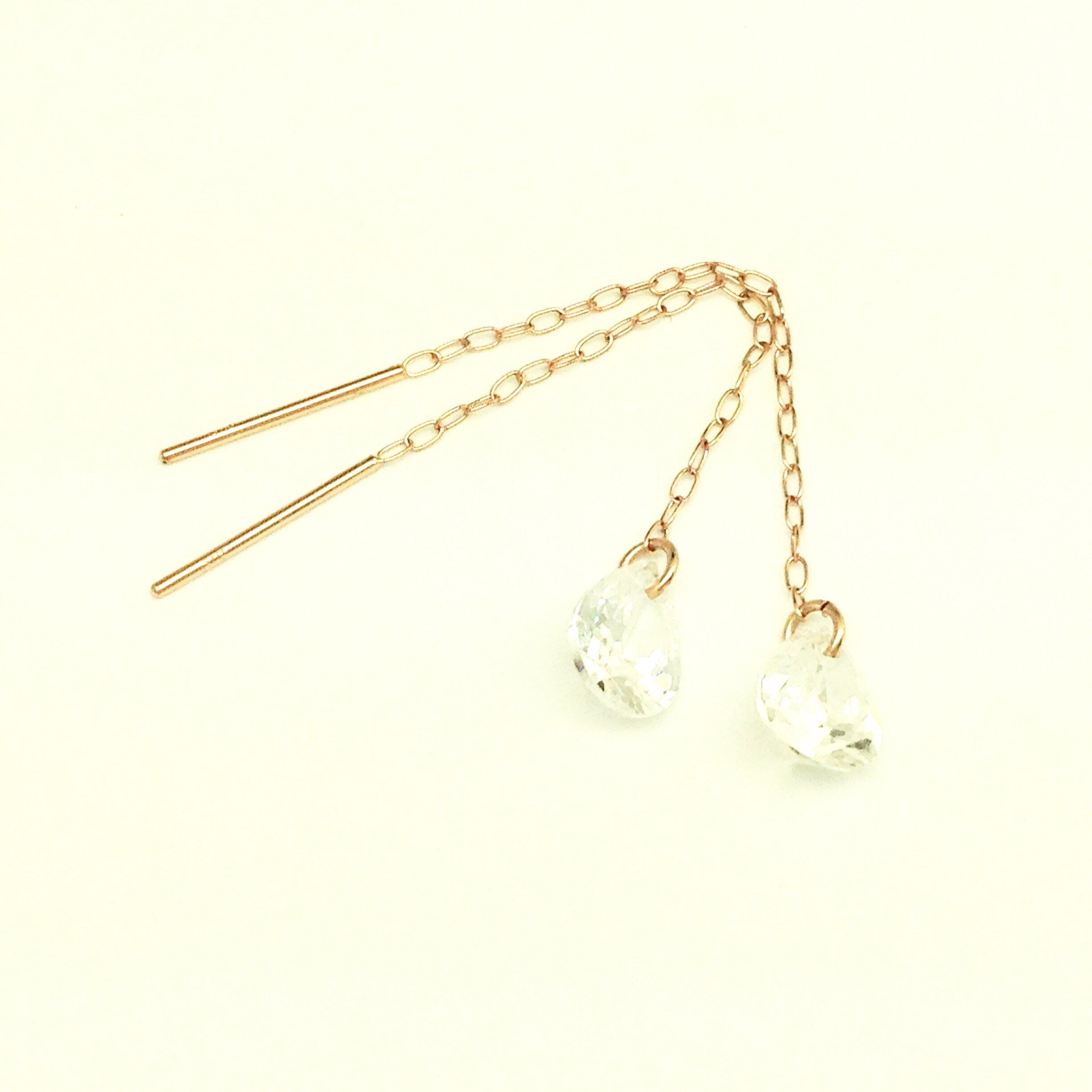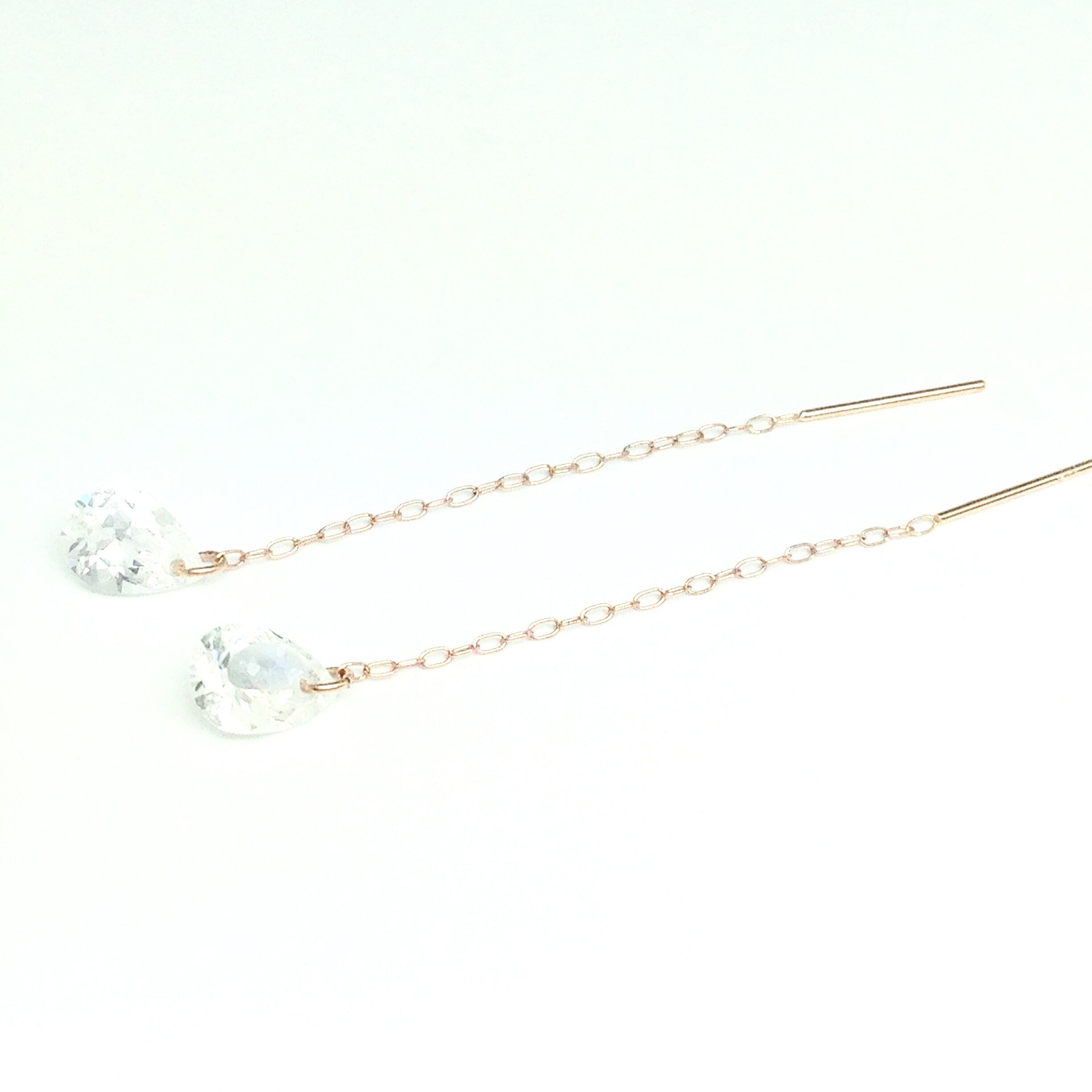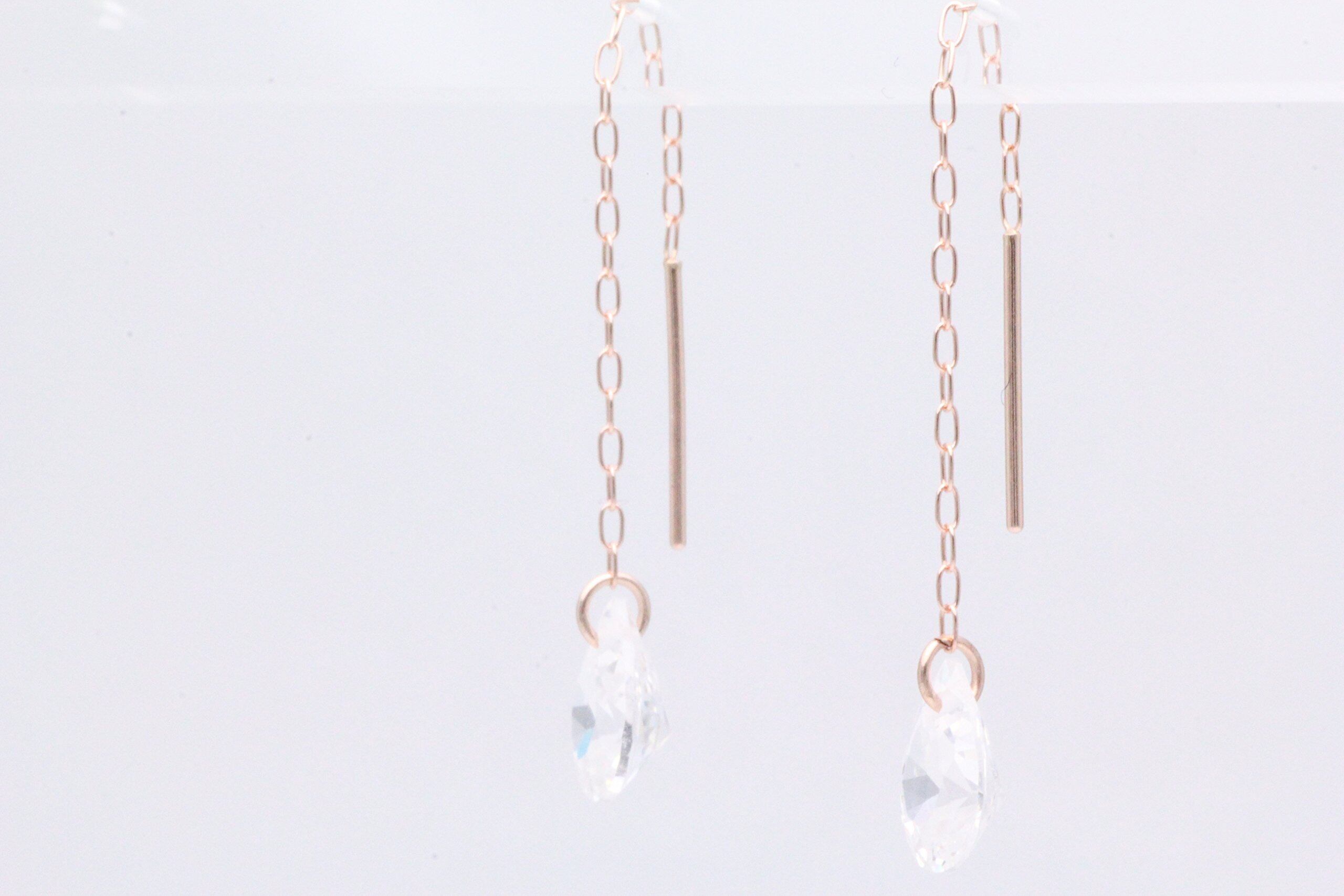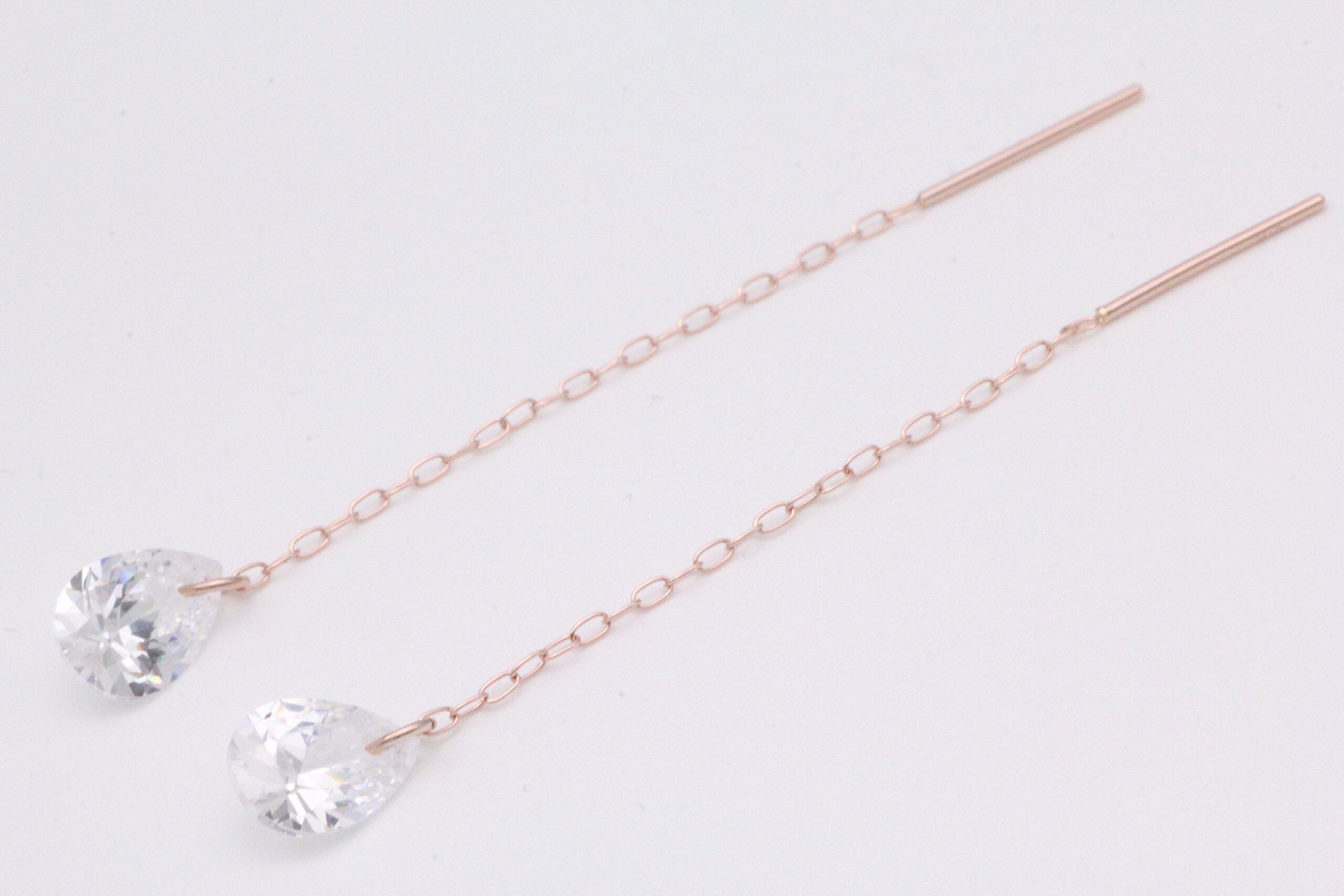 涙型のカットを施したキュービックがゆらゆらと揺れて綺麗な印象のアメリカンピアスです。