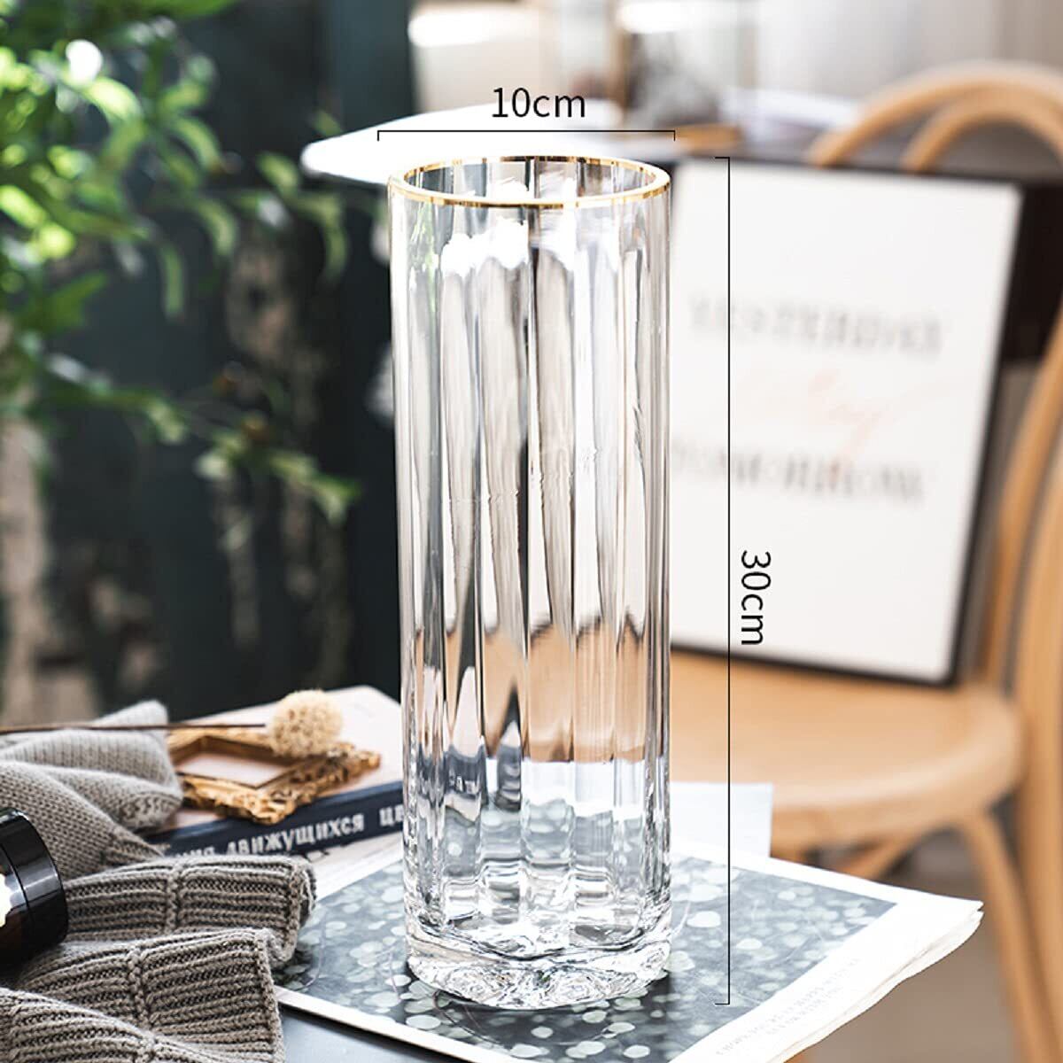 【おしゃれなインテリアを演出!ガラスの花瓶 30cm】この「ガラスの花瓶」は、大きなサイズが特徴で、透明なガラスの美しさが際立つフラワーベースです。高品質なガラスを使用しており、インテリアを引き立てるシンプルかつおしゃれなデザインが魅力です!