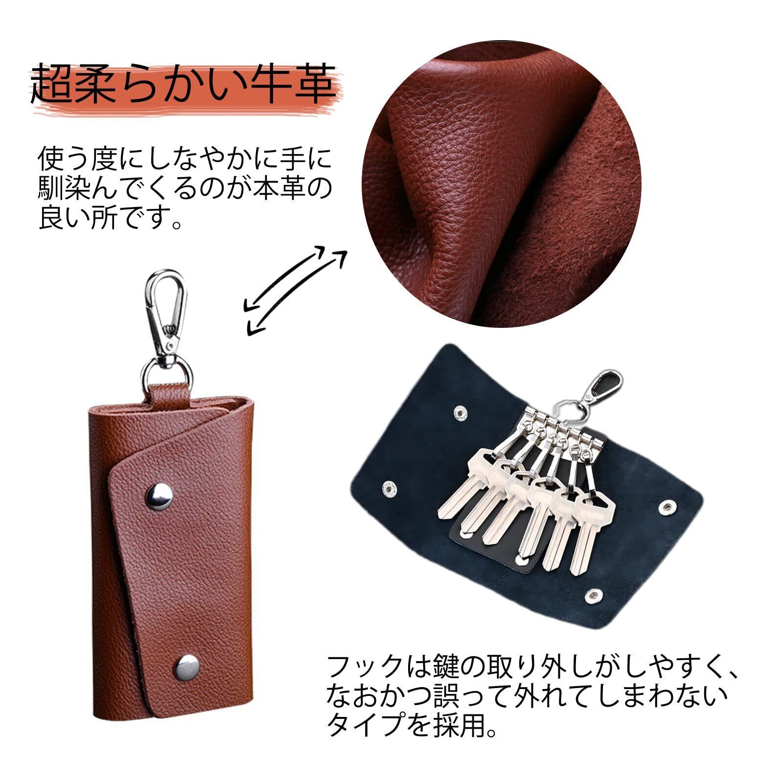 [TOEDNNQI] キーケース 牛革 本革 スマートキー対応 車 軽自動車 六連 6連可 メンズ コンパクト 小さい 薄型 シンプル カードキーケース 車キーケース 男女兼用