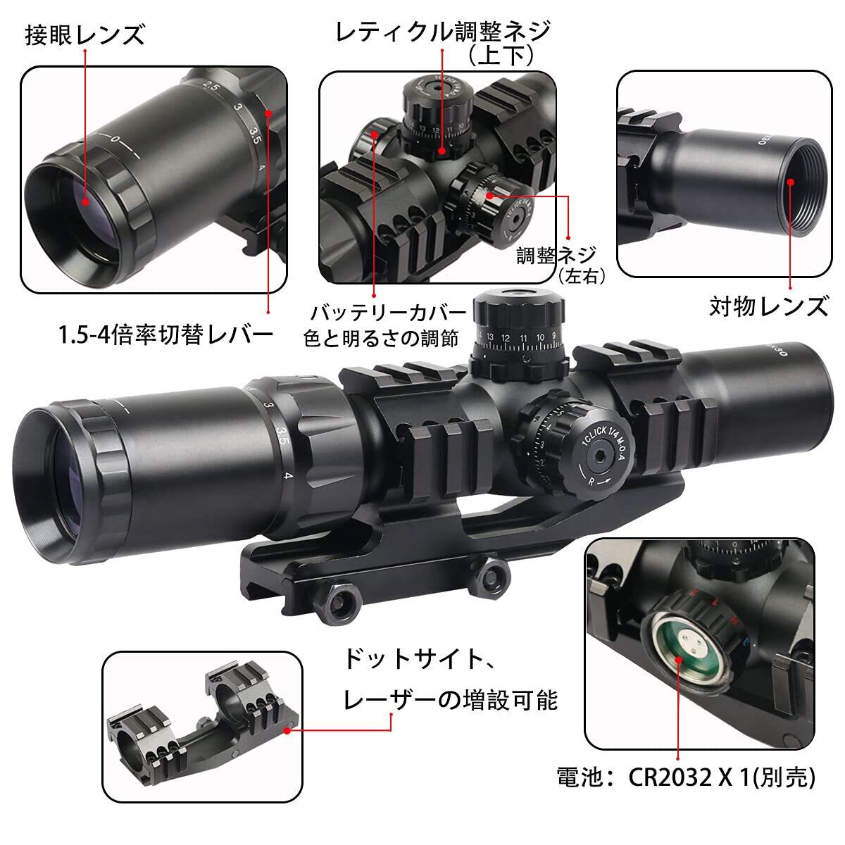 [1.5-4x30BE 可変倍率ライフルスコープ ミル・ドットサイト 20mmレール対応 サバゲー照準器 (ワンピースマウント付属)]