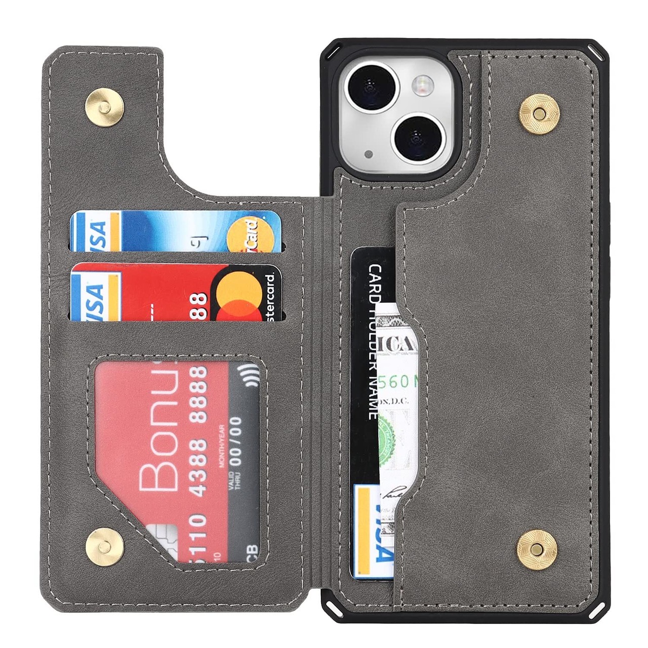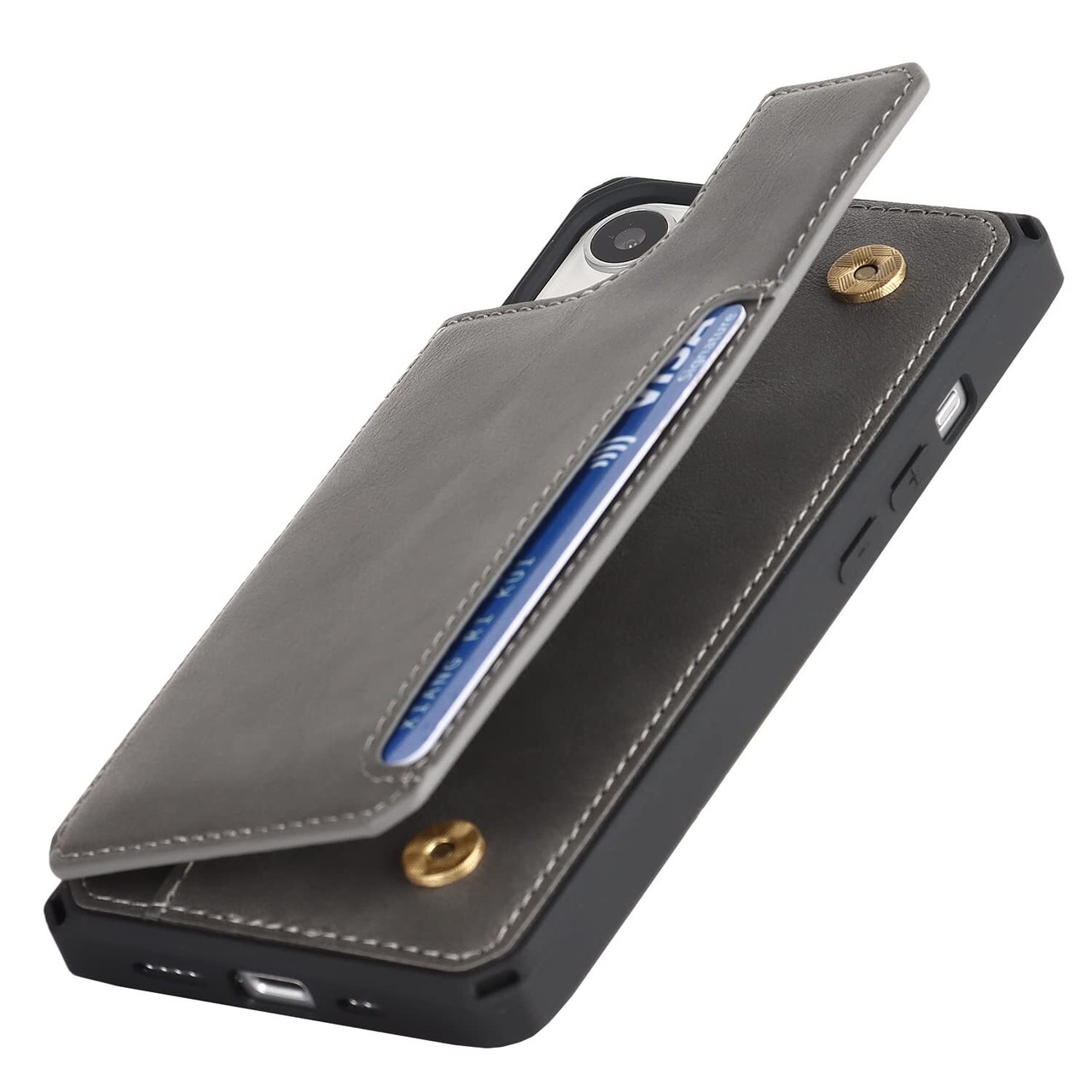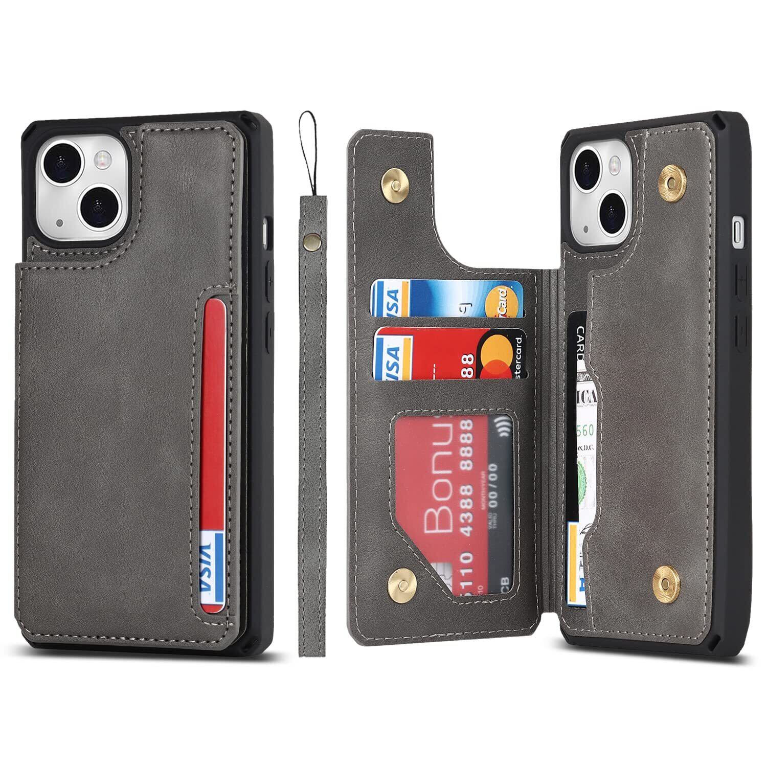 Pelanty for iPhone 14 ケース手帳型 アイフォン14 ケース縄掛け 背面カバー PUレザー IC カード収納 軽量 スタンド機能 ボタン磁気 多機能 for iPhone 14 スマホケース 耐衝撃 滑り防止 全面保護 ストラップ 携帯カバー -グレー | impsmile