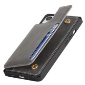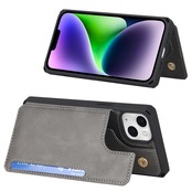 Pelanty for iPhone 14 ケース手帳型 アイフォン14 ケース縄掛け 背面カバー PUレザー IC カード収納 軽量 スタンド機能 ボタン磁気 多機能 for iPhone 14 スマホケース 耐衝撃 滑り防止 全面保護 ストラップ 携帯カバー -グレー