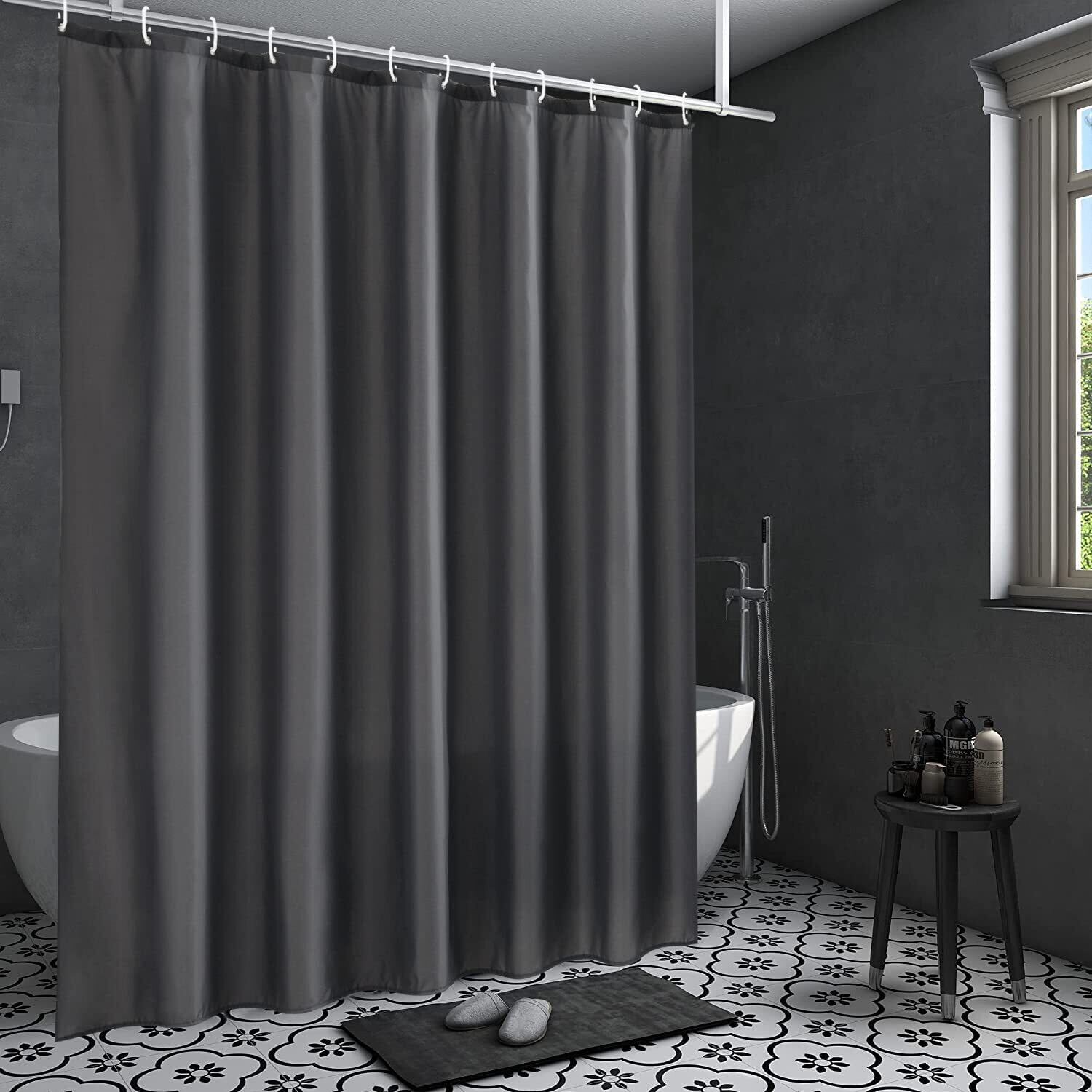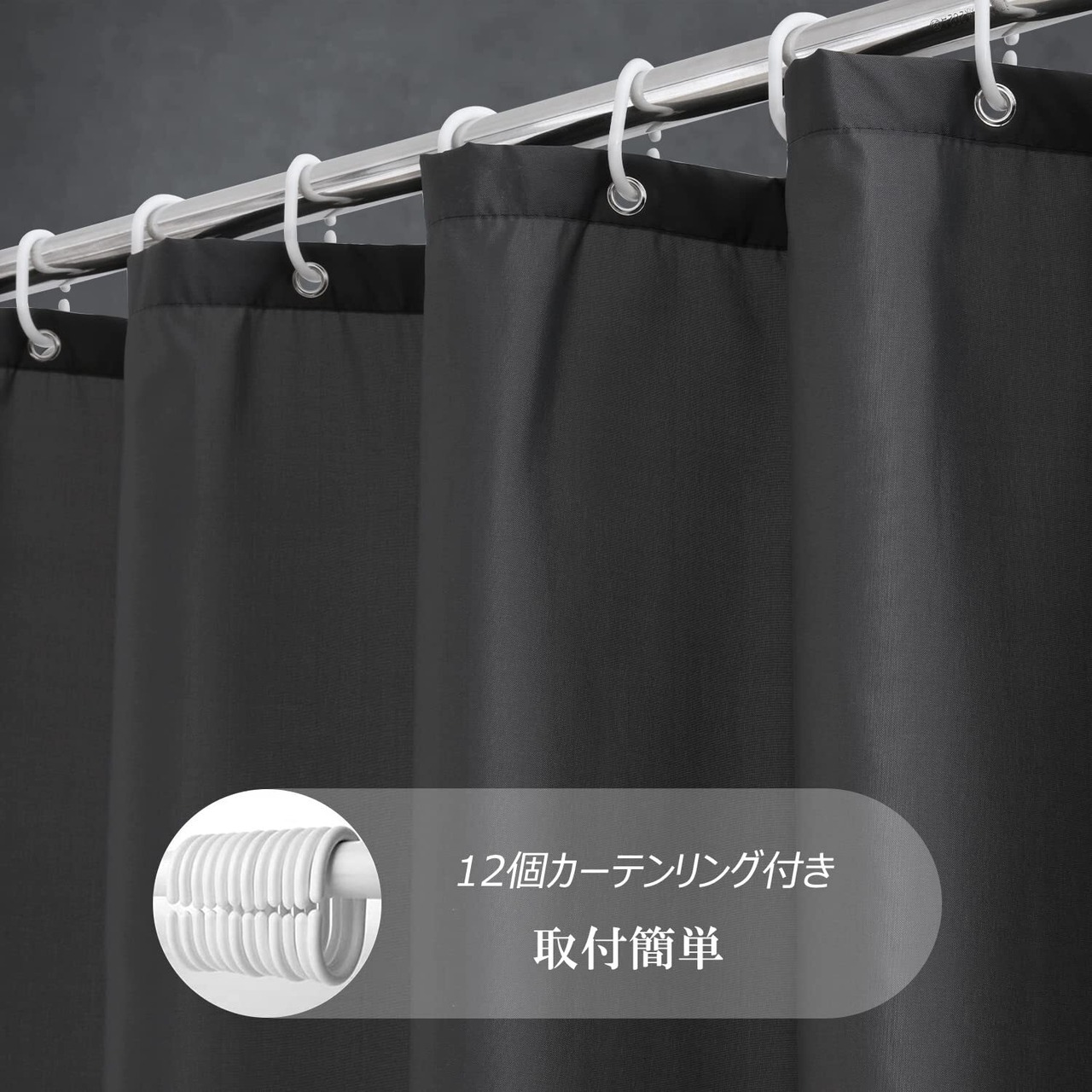 AooHome シャワーカーテン 目隠し 遮像 防カビ 防水 バス用品 ユニットバス ロング お風呂用カーテン 軽量 速乾 リング付き 210cm丈 180cm幅 無地 ダークグレー | impsmile