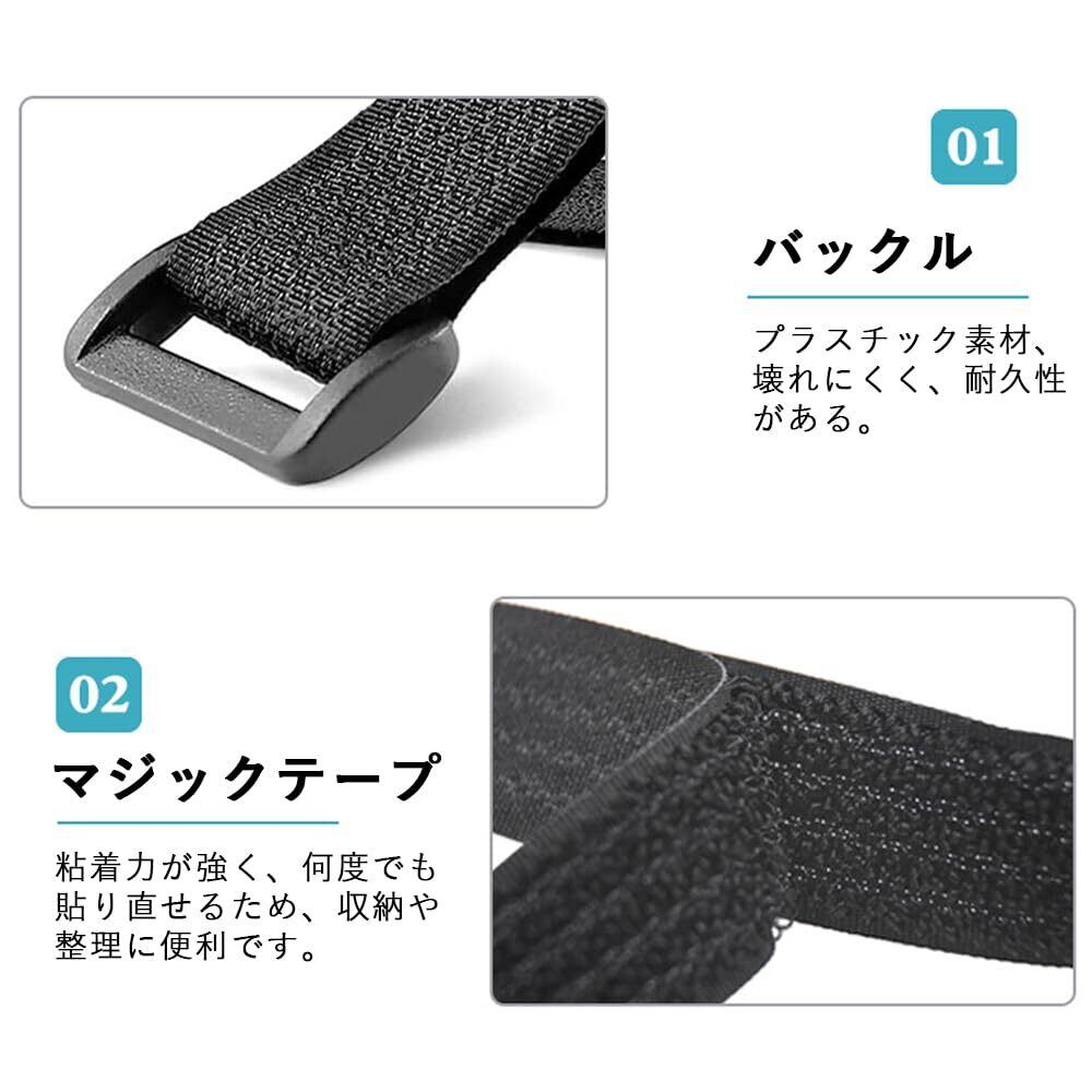 【簡単装着&取り外し】 マジックテープ式の結束バンドは、に簡単に設置・撤去が可能。粘着力が強く、何度でも貼り直せるため、収納や整理に便利です。ホコリやゴミが付着しないようにすれば、安定した接着力を維持できます。
