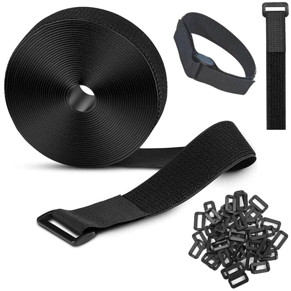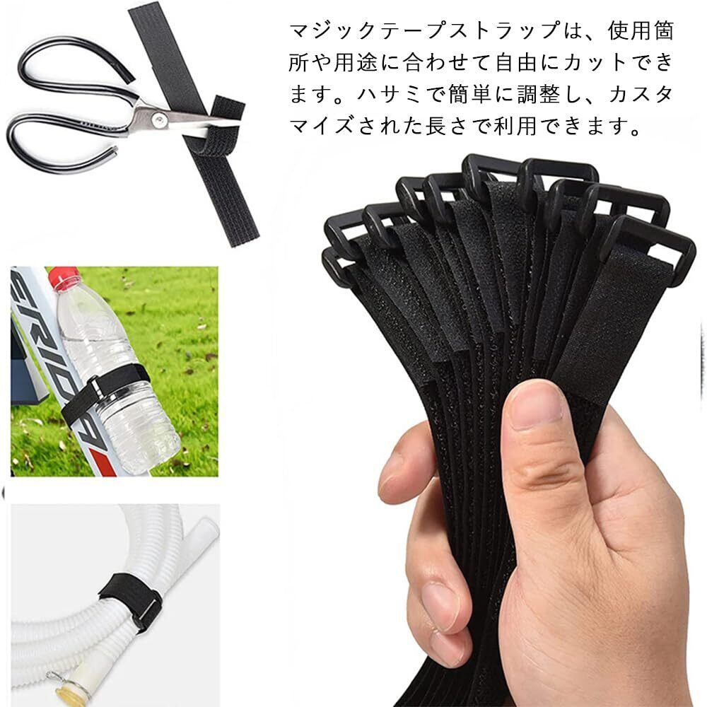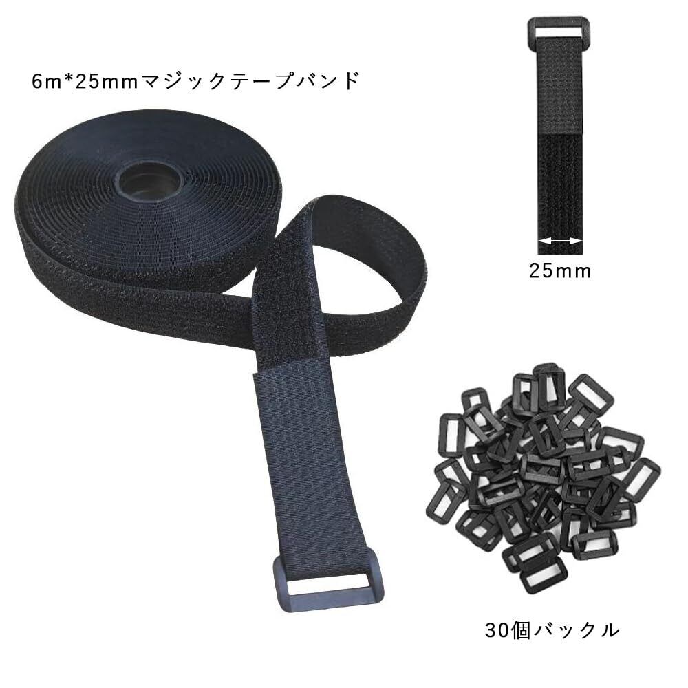 [便利で多用途!] マジックテープ バンド 固定ベルト 長さ6m*幅2.5cm 30個バックル付き - ブラック