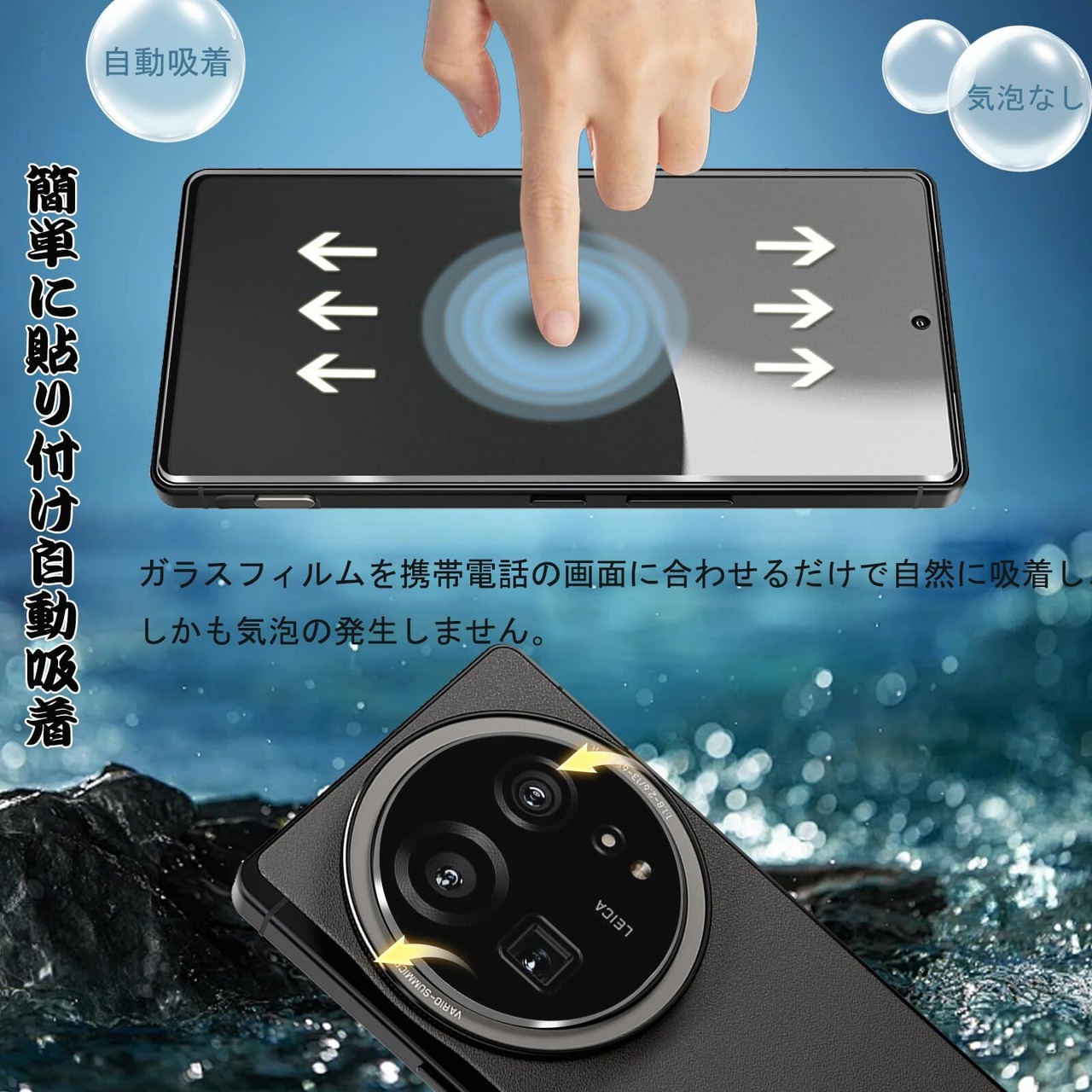 【AQUOS R9 Pro/SH-54E 用の】ラウンドエッジ加工を採用しており、透過率が高いガラスを採用しているため、フィルムを装着しても液晶画面の美しさはそのまま維持することが出来ます。【気泡無しと簡単貼り付け】丁寧に加工したので、気泡が入りにくくて、4つ簡単な手順のみで誰でも簡単に貼り付けることができます。自己吸着できるシリコン粘着シートで、簡単的に貼り付けます。ガラスを液晶に置くだけで自然に吸着、簡単に気泡が抜いて行くので、誰でも簡単、綺麗に貼ることができます。
