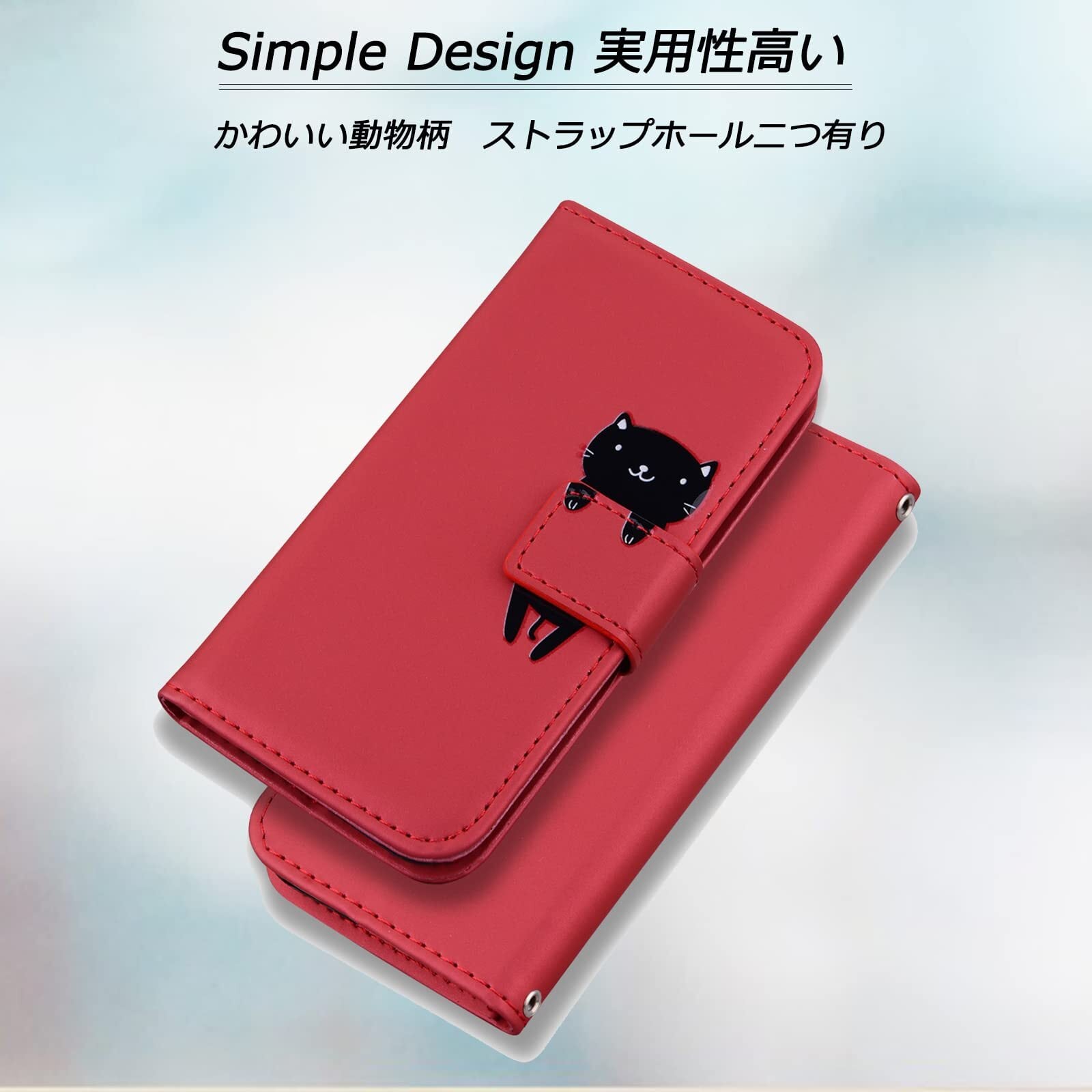 OPPO A55s 5G ケース oppo A55s A102OP CPH2309 手帳型ケース オッポ A55s 5G 手帳型 oppoA55s カバー 携帯ケース a55s 5g スマホケース 携帯カバー A55s5G ケース手帳型 スマホケース oppoa55s case 肌触り良いレザー柔らかいTPUケース カード収納 財布型 ベルトマグネット スタンド機能 猫 かわいい 動物柄 薄型 防水 ノート型 人気 おしゃれ 男女兼用 赤 (OPPO A55S 5G 対応) レッド