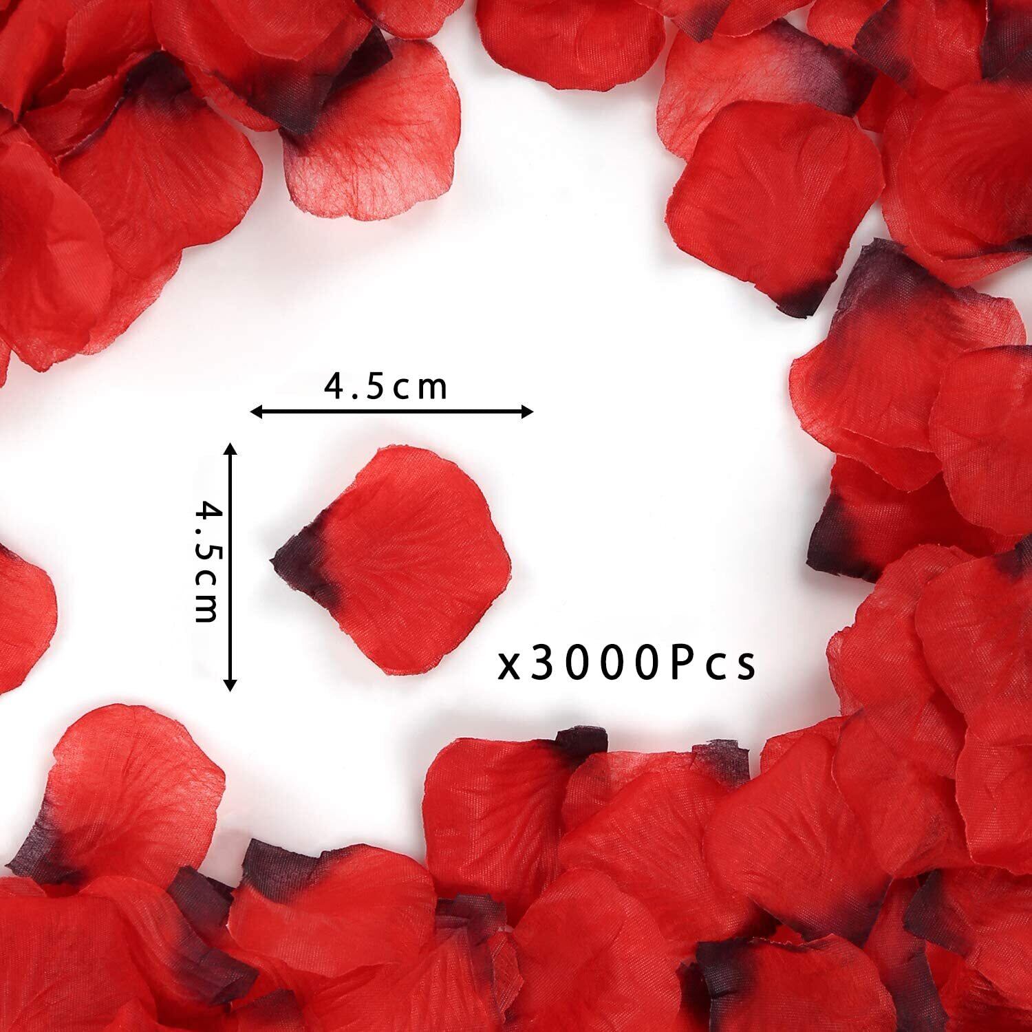 [特別な瞬間を彩る!] [花びら 約3000枚セット フラワーシャワー 薔薇 造花 プロポーズ 飾り 結婚式 ウエディング 2次会 誕生日 お祝い クリスマス パーティー用飾り (赤と黒 3000枚)]