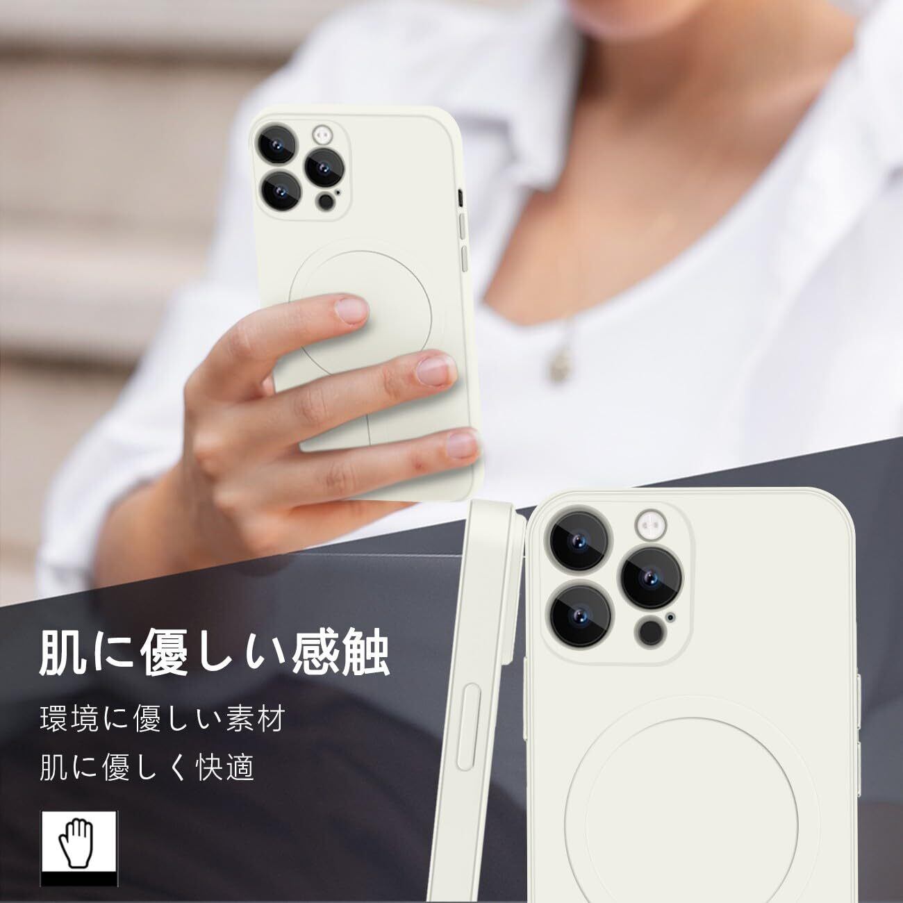 [bjnosdv] マグセーフ対応 iPhone 13Pro ケース いpほね13Pro MagSafe対応 ワイヤレス充電対応 シリコン 耐衝撃 アイフォン13Pro カバー 液体シリコーン スマホケース マット質感 柔軟 ストラップホール付き 指紋防止 滑り止め 落下防止 6.1インチ(オフホワイト)