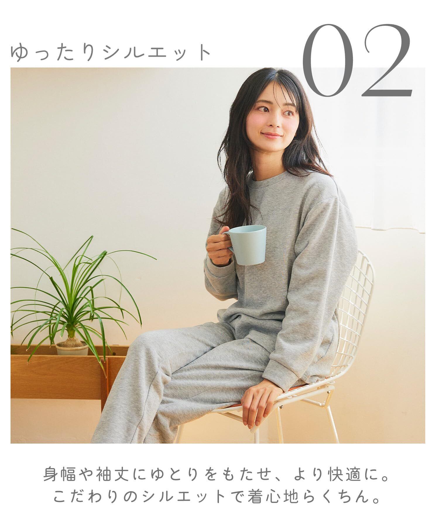 [Lafuku] ラフク 裏起毛 パジャマ ルームウェアセット レディース トレーナー スウェット 長袖 パンツ 長ズボン あったか 10色展開