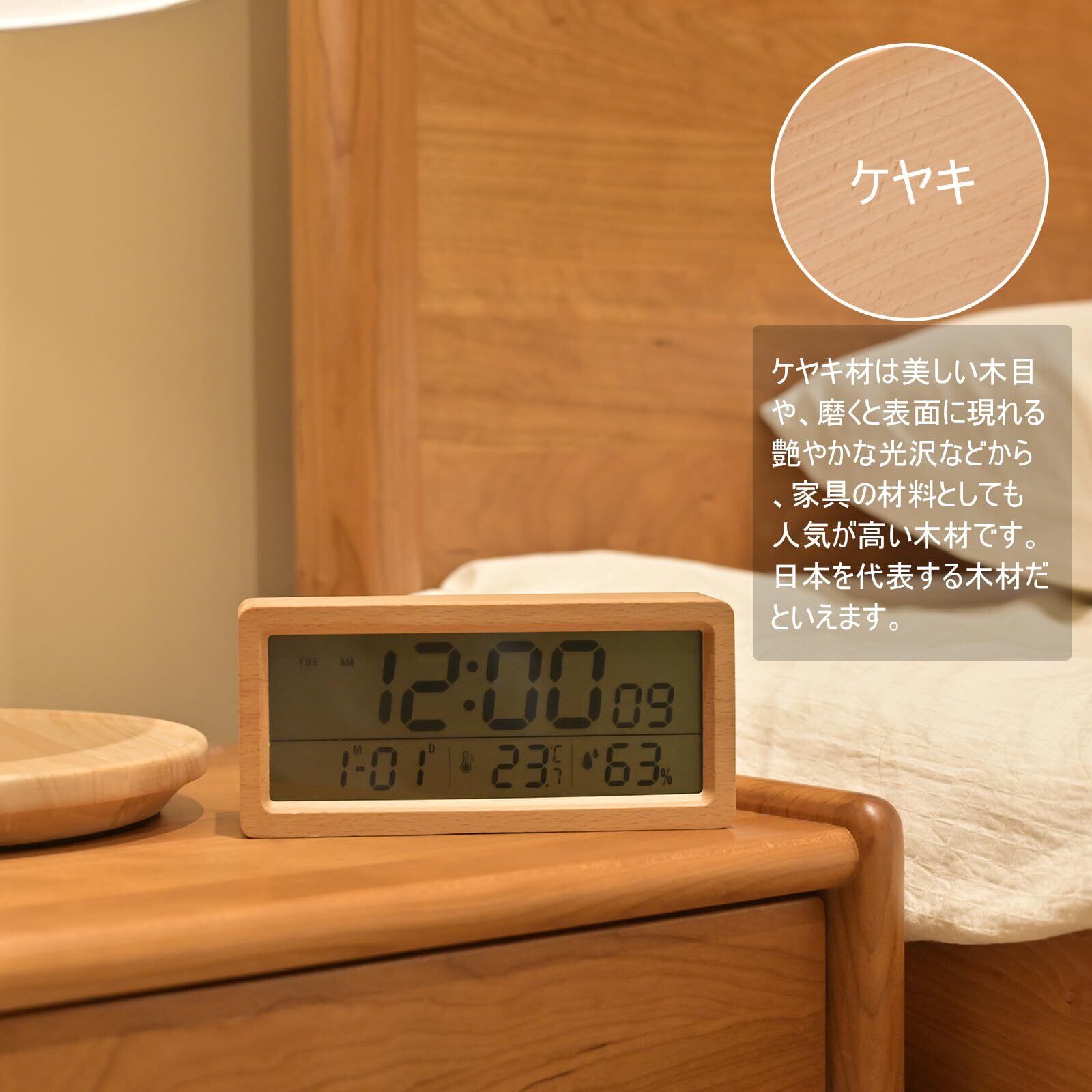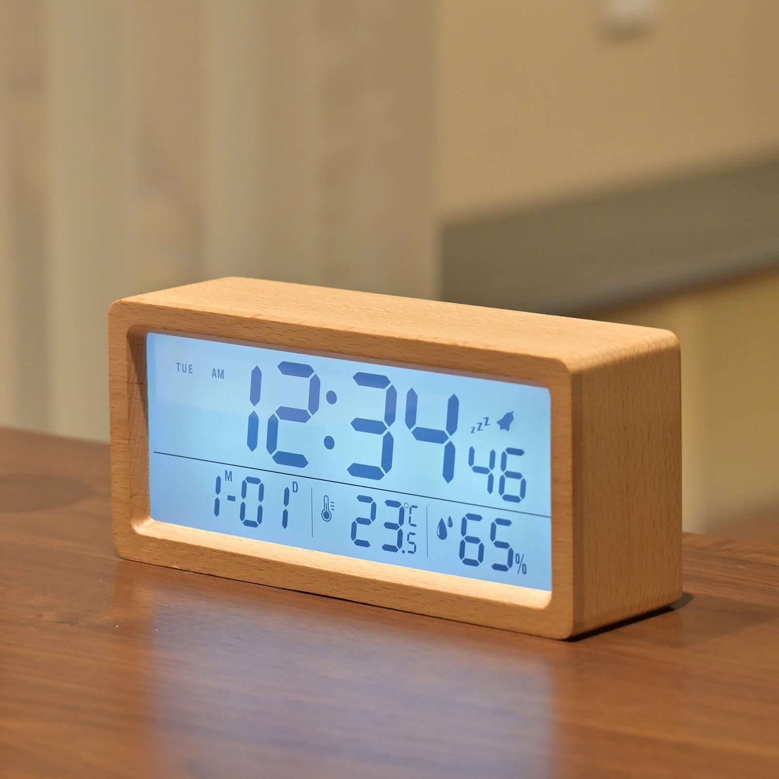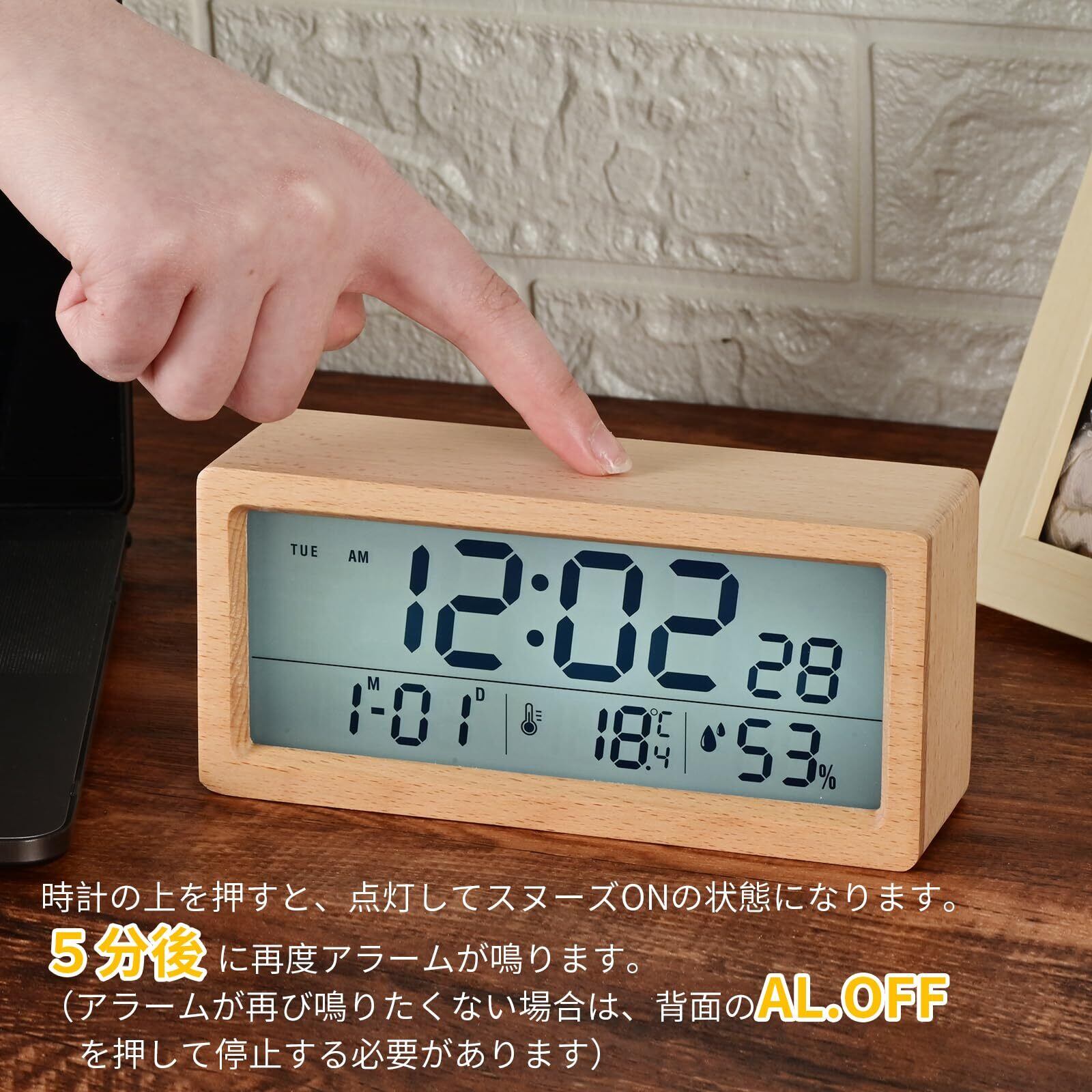 デジタル目覚まし時計 電池式 木製置き時計 き湿度と温度検出電子時計 LCD 持ち運びが容易、寝室、ベッドサイドテーブル、机、オフィス、子供、家族に適しています(ナチュラル)