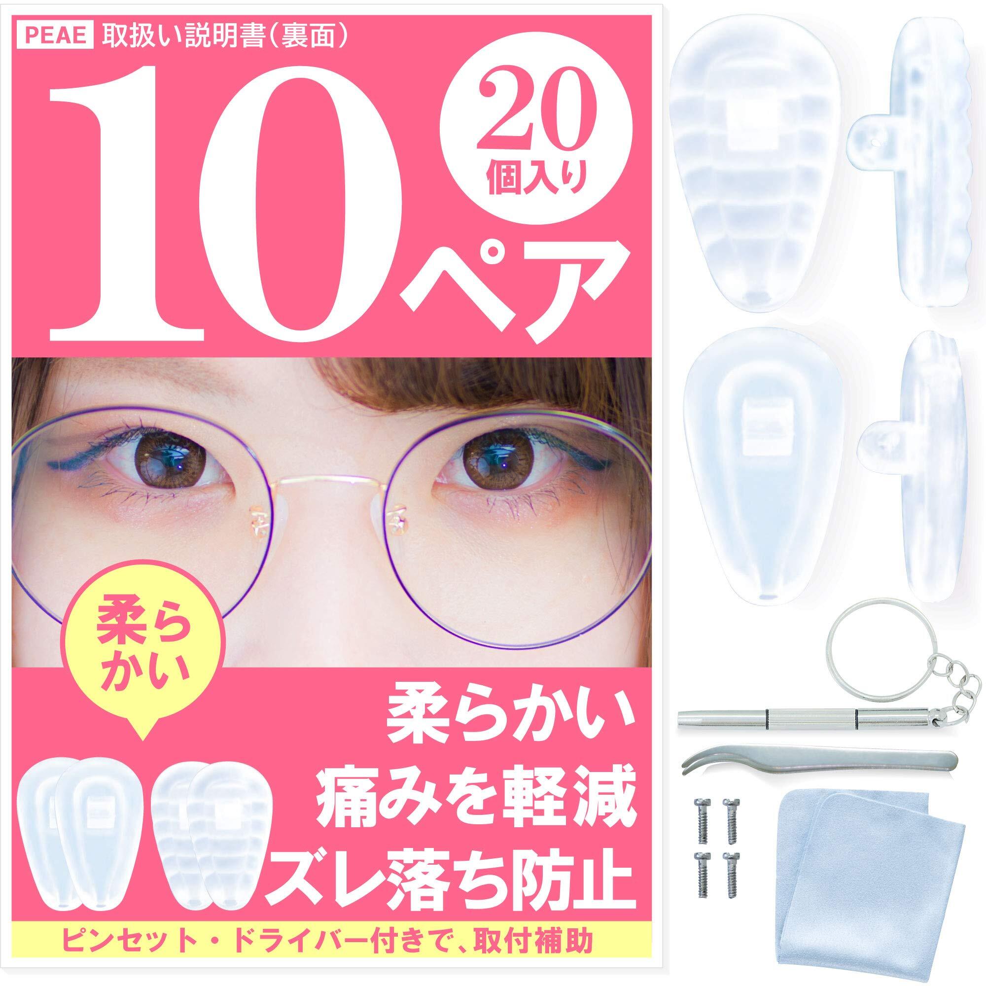 メガネ鼻パッド 20 個 10 ペア 中空 構造 シリコン製 ドライバー・ピンセット・ネジ メガネ 鼻パッド パッド 鼻あて(ペアエ)クリア