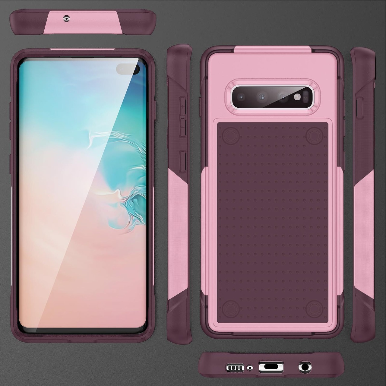 Galaxy S10 ケース 黄ばみなし 耐黄変 Galaxy S10 カバー 耐衝撃 米軍MIL規格取得 レンズ保護 落下防止 滑り止め TPU+PC スマホケース おしゃれ 耐磨 ピンク/黒 0111-AS10-07-CP