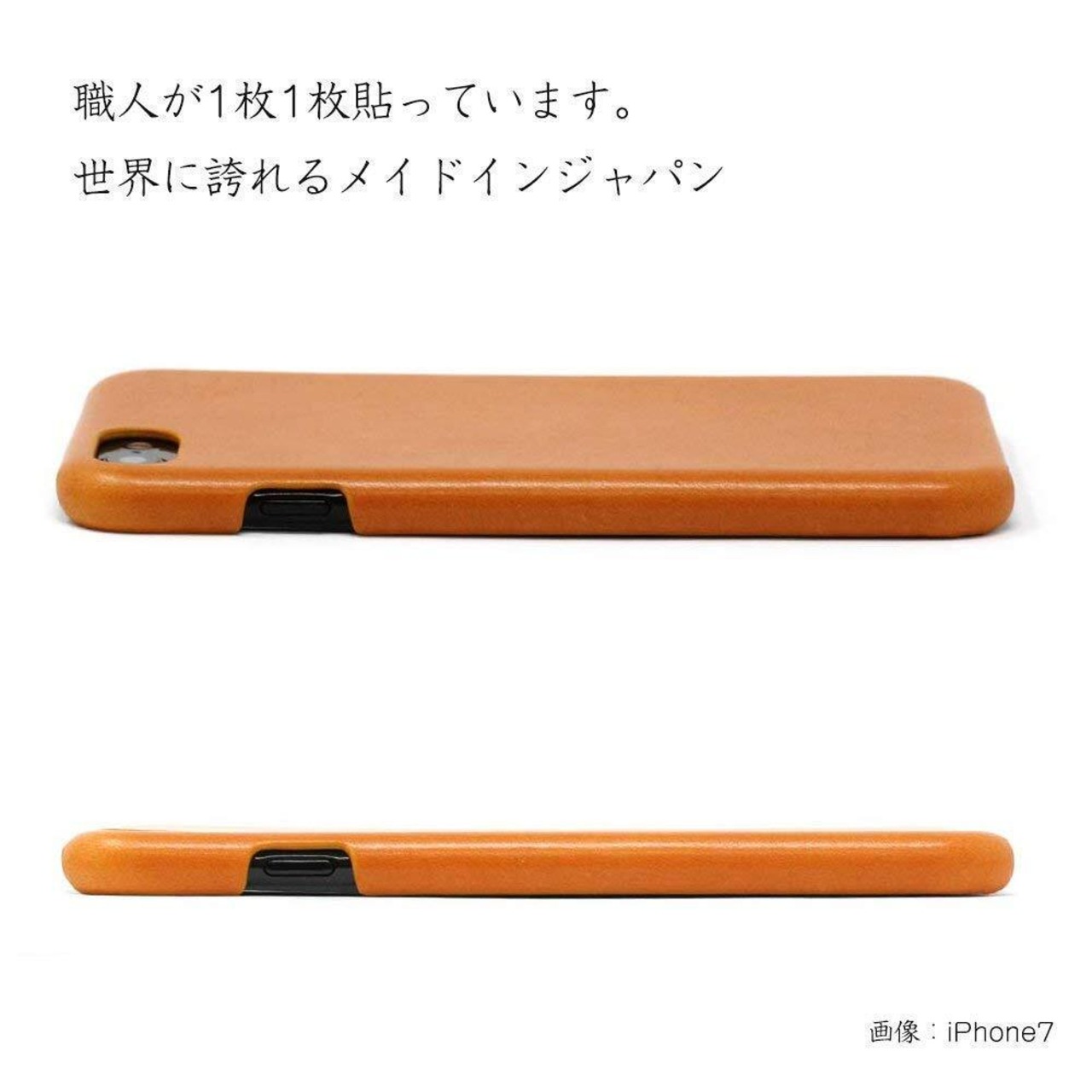 職人が1枚ずつ手貼りで仕上げています。端とカメラ穴は丁寧な樹脂仕上げ。スマホをまるっと包み込むように手に馴染みます。