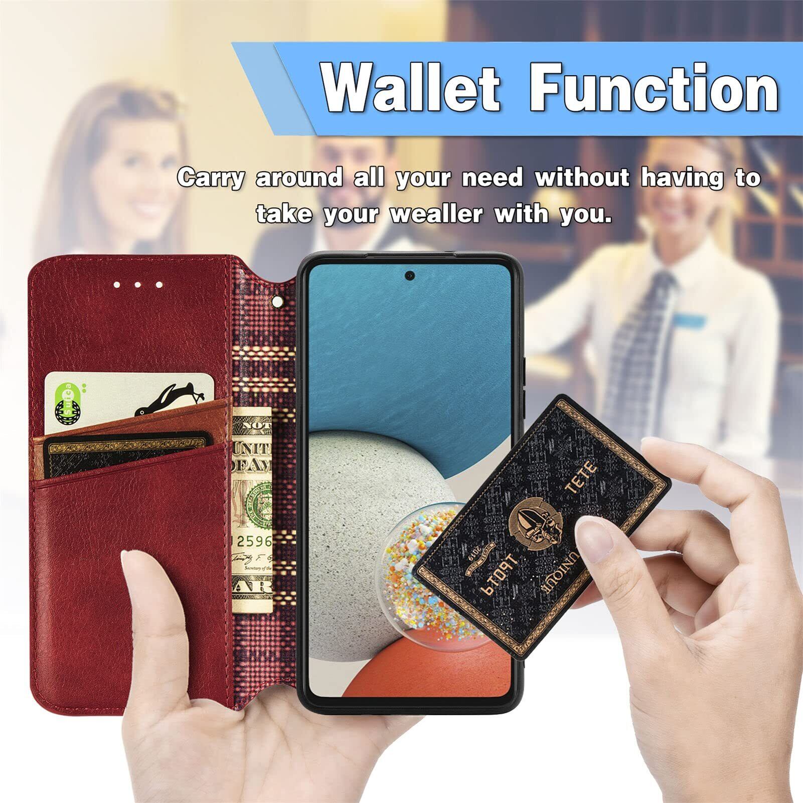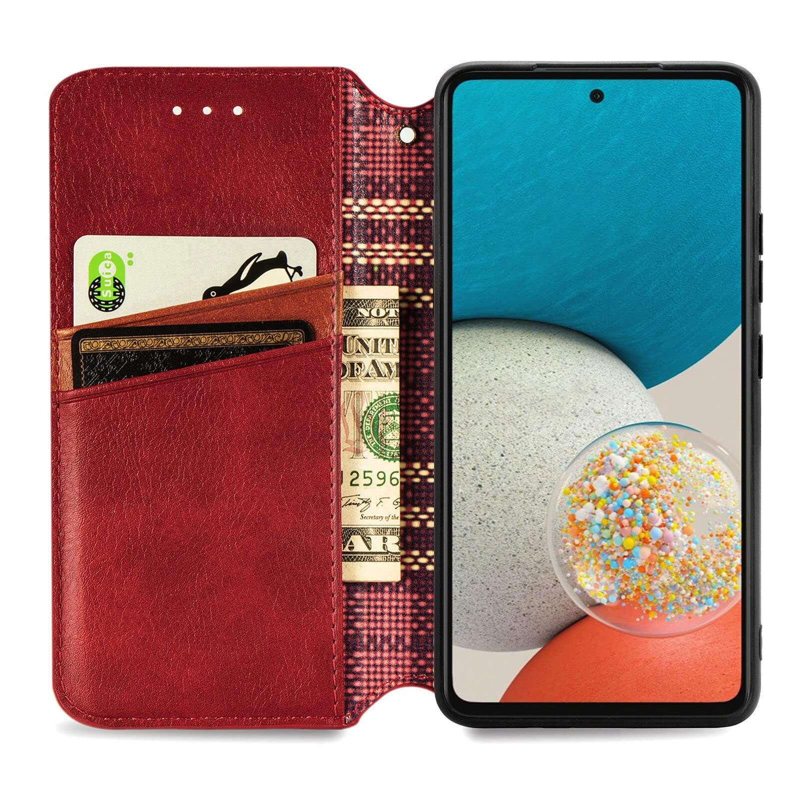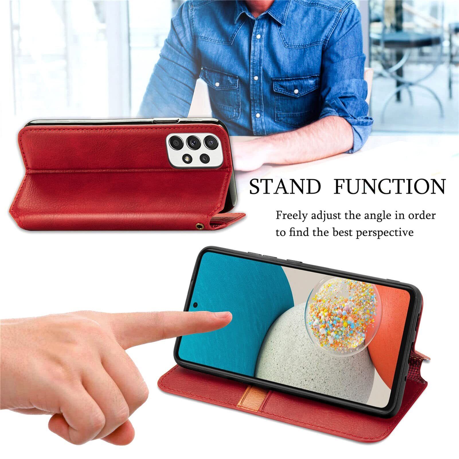 に適用するGalaxy A53 5G SC-53C SCG15 ケース 手帳型 ノートブック型ビジネスフォンケース 携帯電話保護カバー強い吸引力ノートブック型多機能携帯電話ホルスター財布携帯電話ホルダーバンプパターンテクスチャ耐久性摩擦耐性携帯電話ケース男性と女性に適した多色オプション (赤)