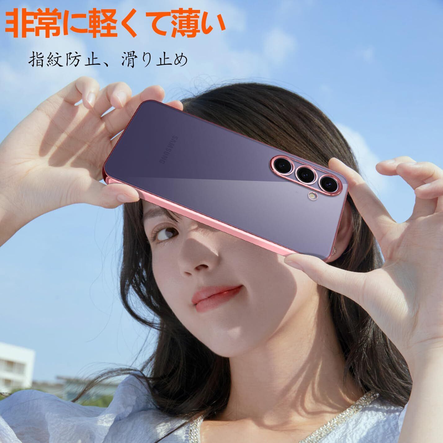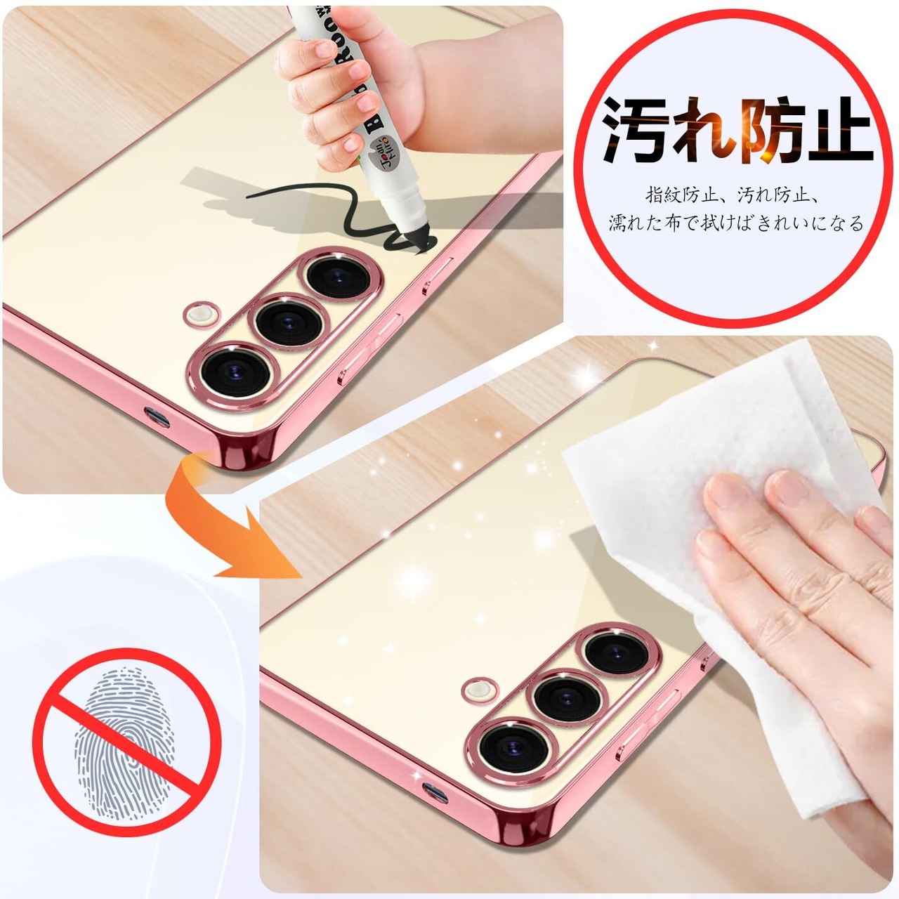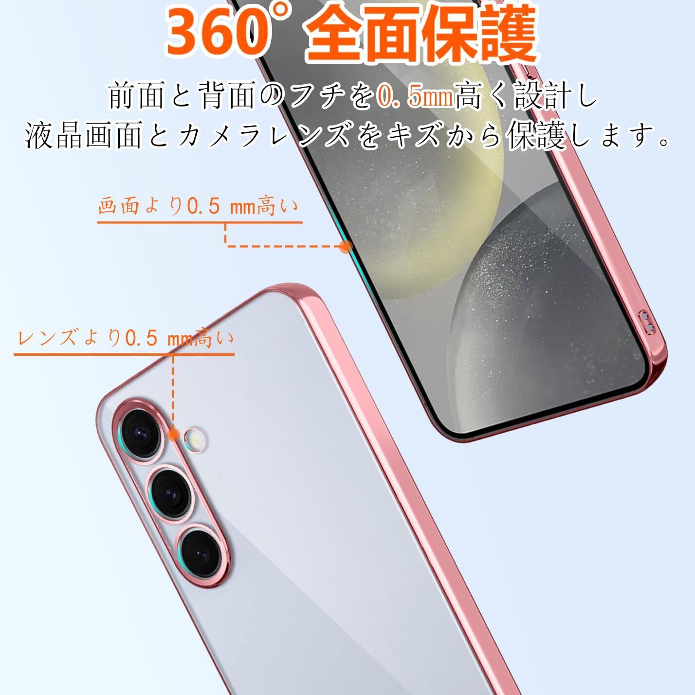 Galaxy S24 用 ケース クリア ギャラクシーs24 SC-51E SCG25 カバー 透明 耐衝撃 軽量 薄型 tpu 背面クリア メッキ加工 スマホケース ソフト ストラップホール付き ワイヤレス充電対応(ローズゴールド)