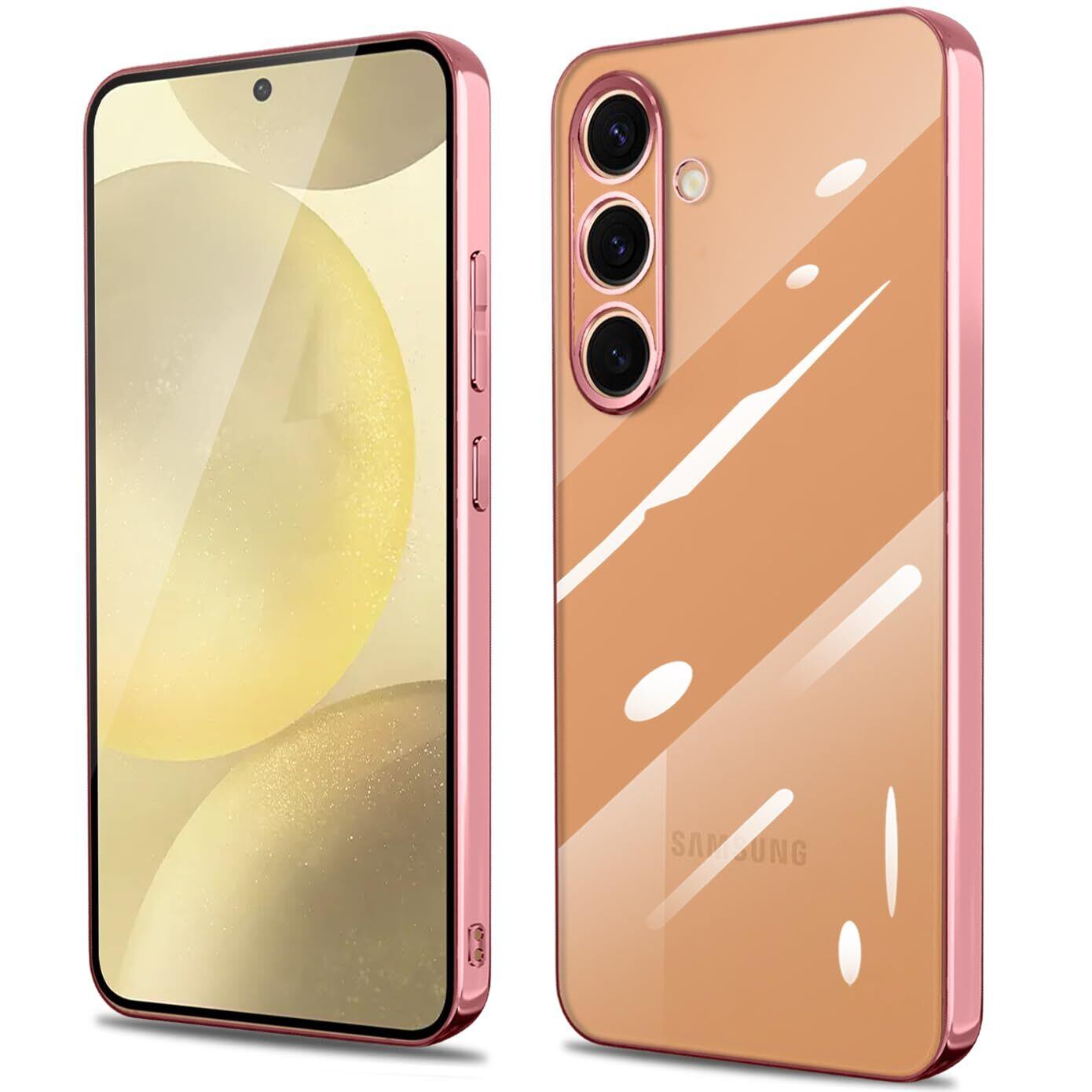 Galaxy S24 用 ケース クリア ギャラクシーs24 SC-51E SCG25 カバー 透明 耐衝撃 軽量 薄型 tpu 背面クリア メッキ加工 スマホケース ソフト ストラップホール付き ワイヤレス充電対応 (ローズゴールド)
