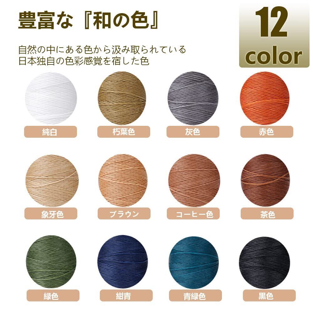 【創作の幅を広げる手芸糸!】この「蝋引き糸 ロウビキ ワックスコード」は、魅力的な12色展開であなたの手芸やDIYプロジェクトを華やかに彩ります。レザークラフトや刺繍、編み物など、様々な用途に最適なアイテムです!