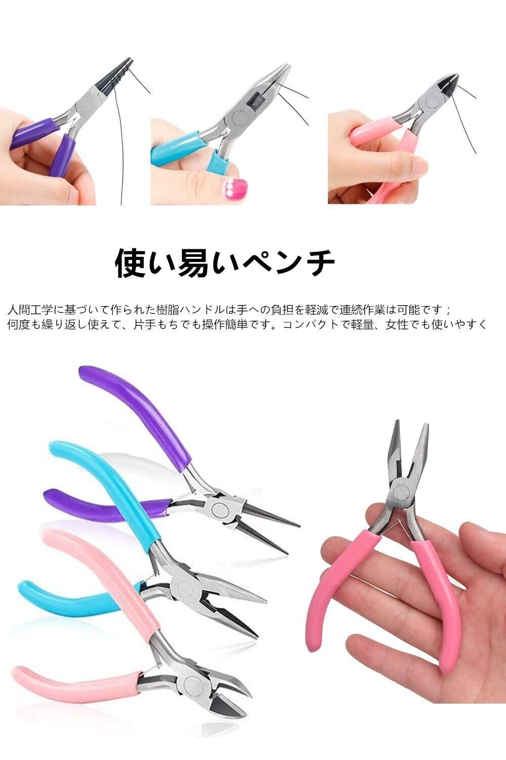 【アクセサリー用基本工具】手作り活動の各種の需要を一気に応じます。ハンドメイドアクセサリー作り初心者さんにもオススメ!手作りのネックレスやブレスレット、DIYアクセサリーなど素敵なハンドメイドの手芸用品が作れます。