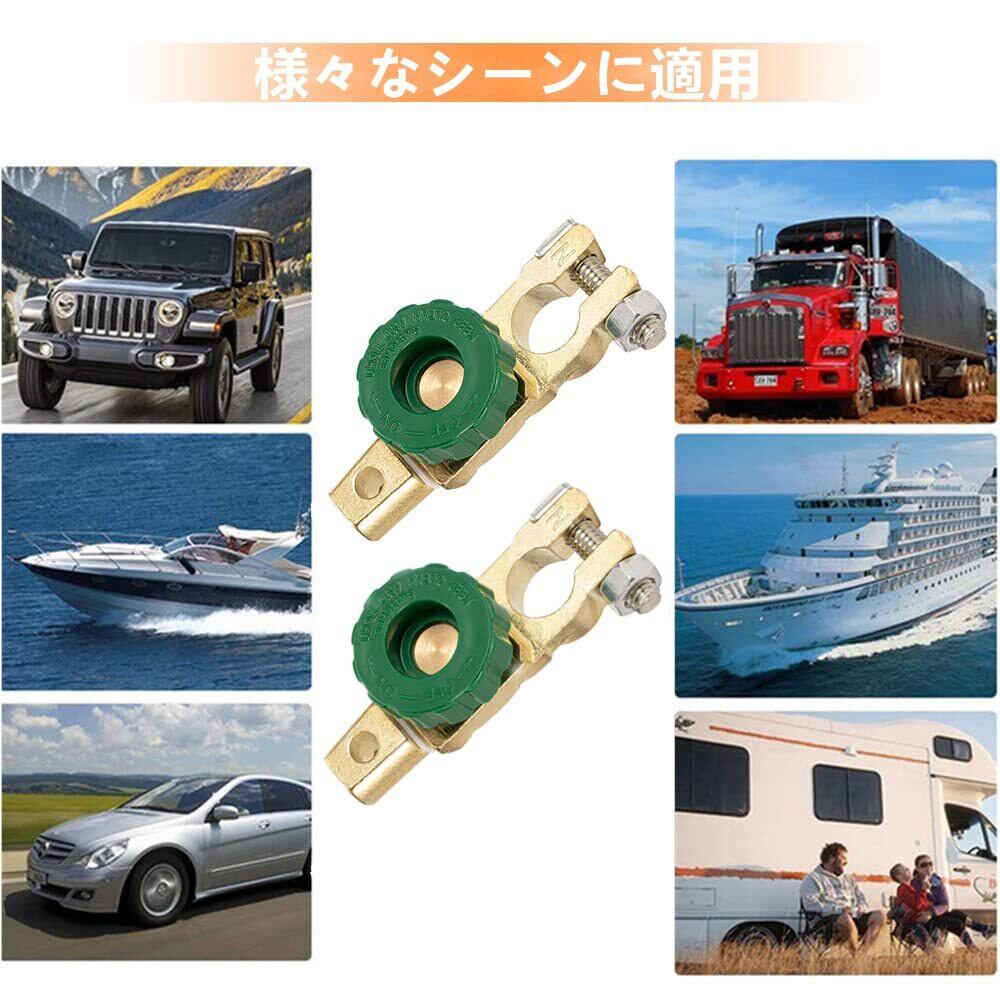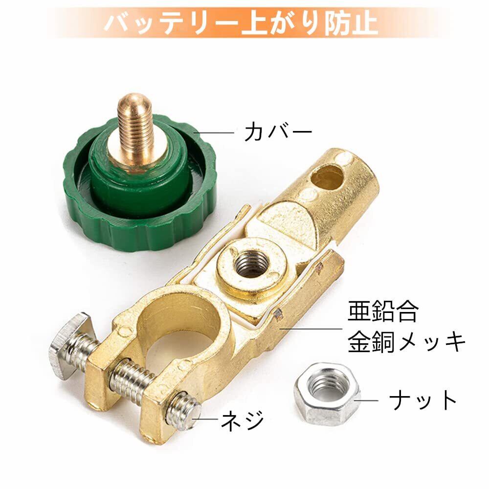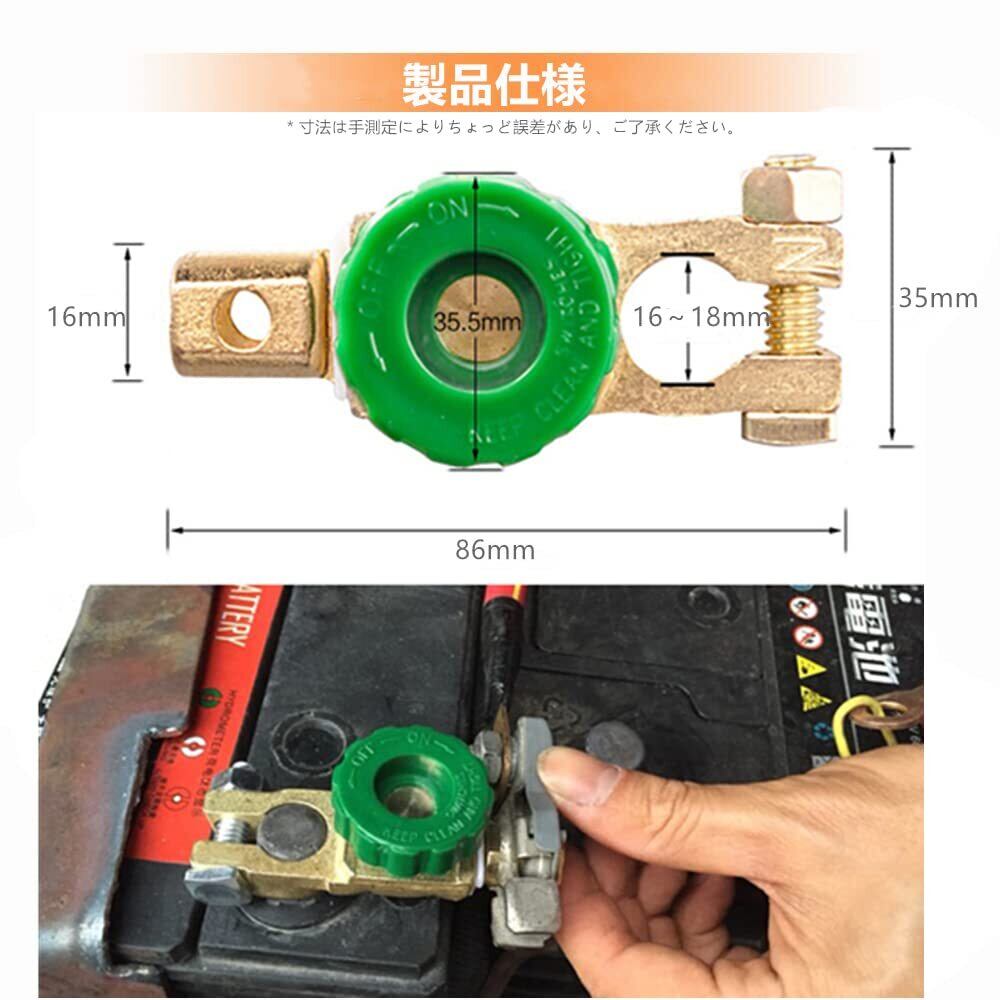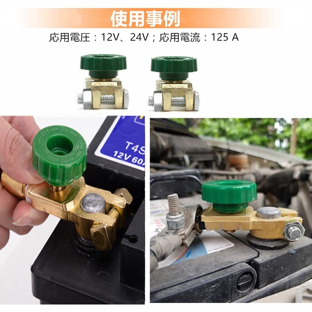 【パッケージ内容】バッテリーカット2点セット、応用電圧:12V、24V;応用電流:125 A;カラー:グリーン(+D端子)。