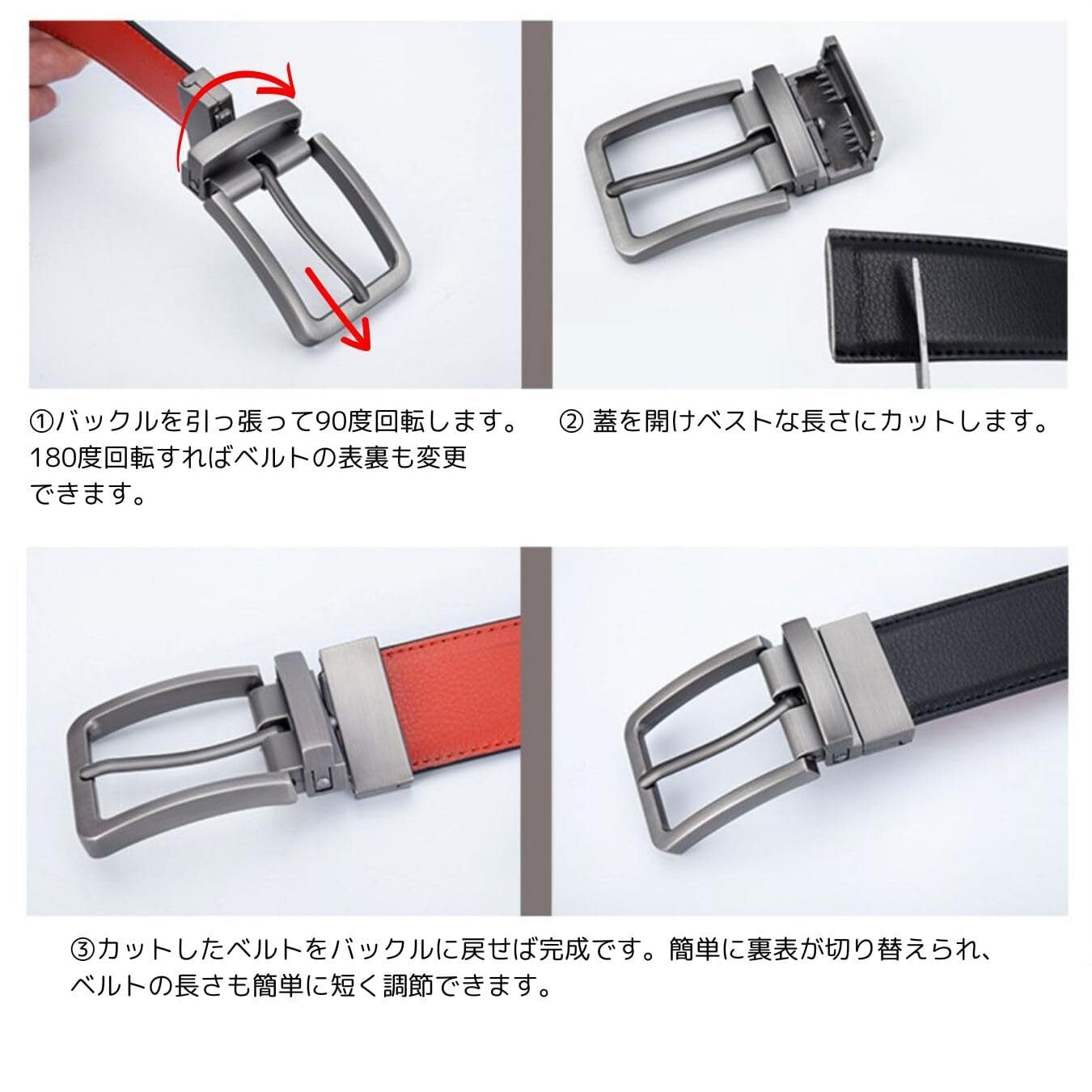 ベルト メンズ リバーシブル ビジネス カジュアル ゴルフ レザー 本革 リバーシブル 表裏 2色 長さ調節 ベルト長さ約120cm