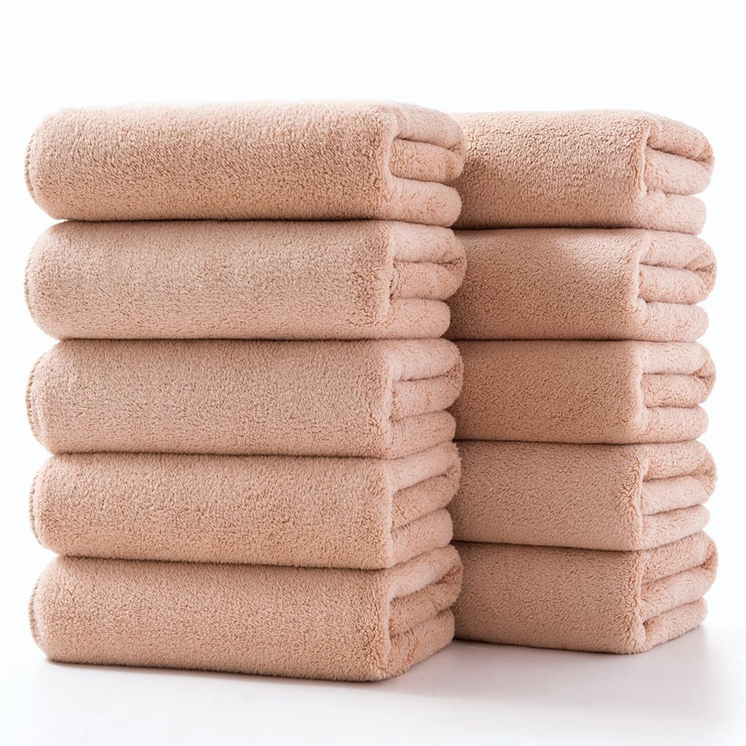 フェイスタオル 速乾 【Lumimi 10枚セット モカブラウン 35*75cm 】 ホテル仕様/業務用/家庭/スポーツなどに最適 マイクロファイバー 瞬間吸水 柔らかい 素肌にやさしい | impsmile
