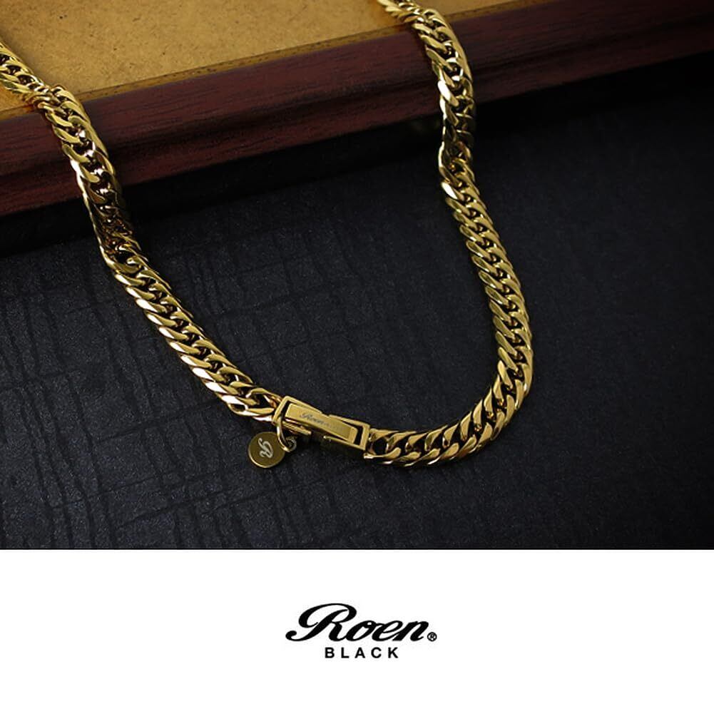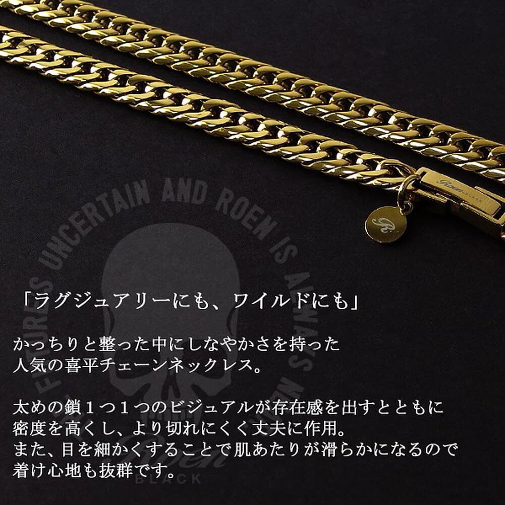 [ロエンブラック] 6面カットダブル喜平チェーン(ゴールド) ステンレスネックレス 幅5.5mm 50cm メンズ 金属アレル ギー 対応