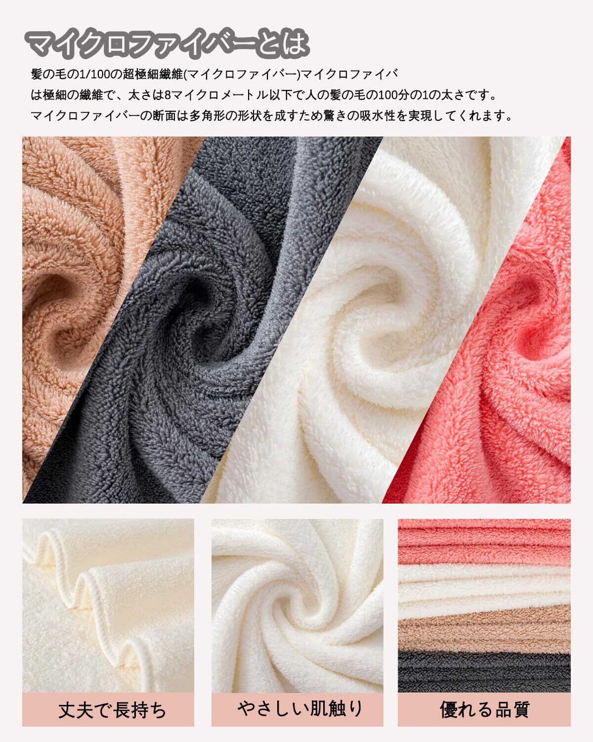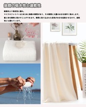 【抜群の吸水性と速乾性】綿の素材より吸水性が優れます。マイクロファイバー素材の表面は数えられない隙間があり、その隙間に大量の水分を素早い吸水できます。髪や肌にそっと当てるだけで水分が吸収される素材であり、また汚れも落としやすい特徴があります。隙間に取り込まれた空気が水分を拡散させるので、速乾性のポイントで、バスタオルの雑菌を抑え、健康を保つことができます。