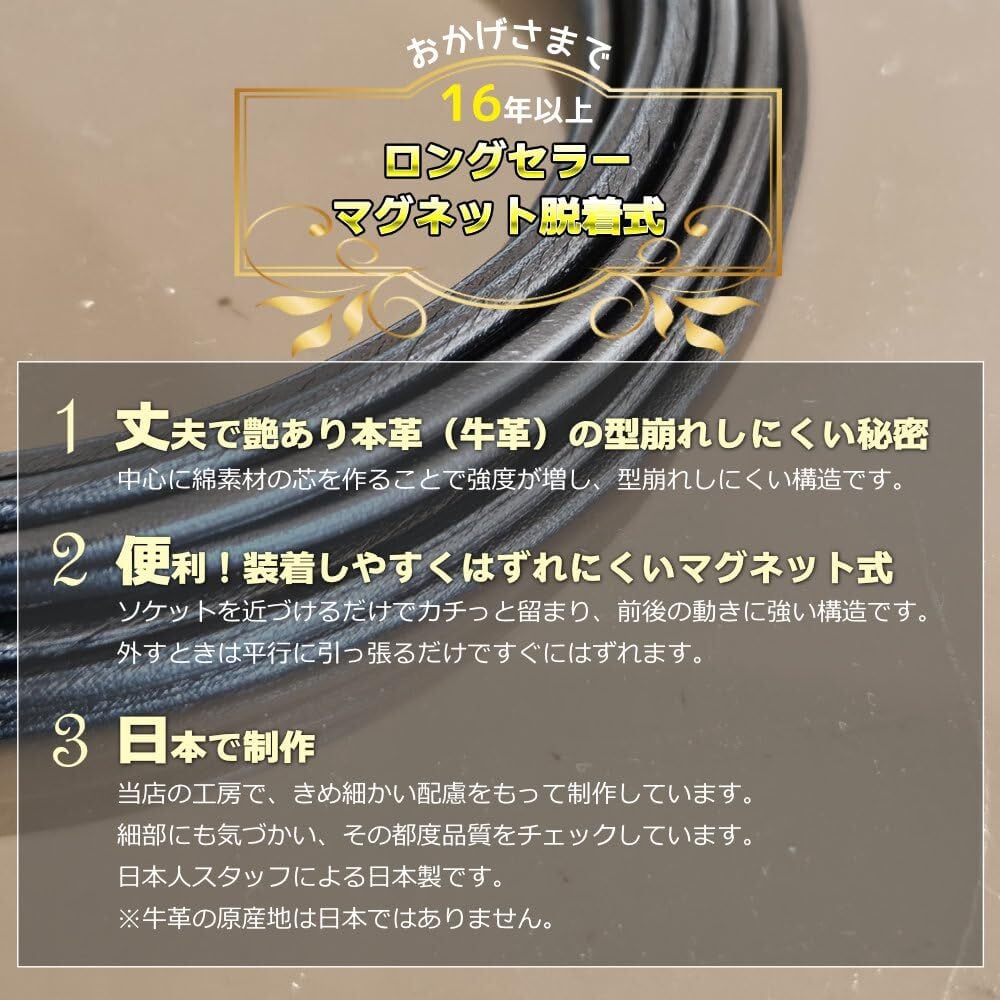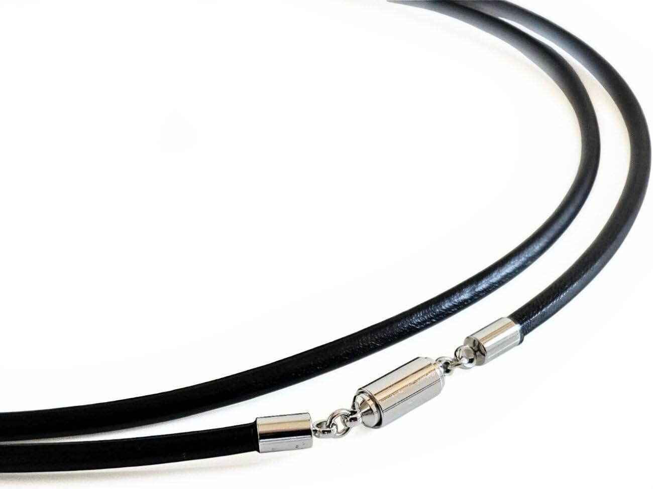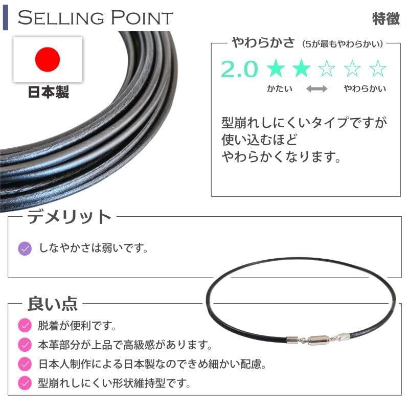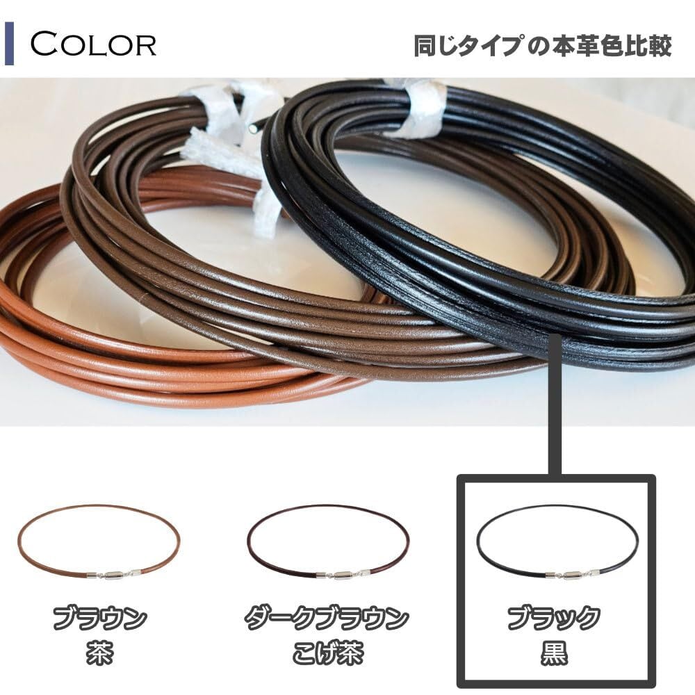 本革 レザー ネックレス チョーカー チェーン 便利 マグネット式 (ブラック 黒) 型崩れしにくい 太さ 3mm 選べる長さ 38cm~60cm 日本製