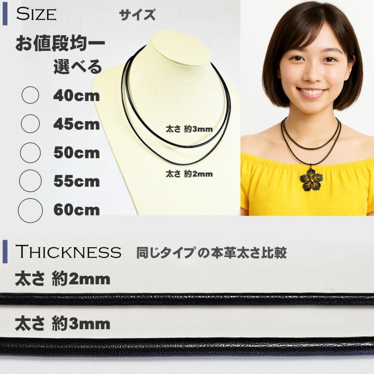 サイズ:太さ 3mm、長さ 38cm~60cm