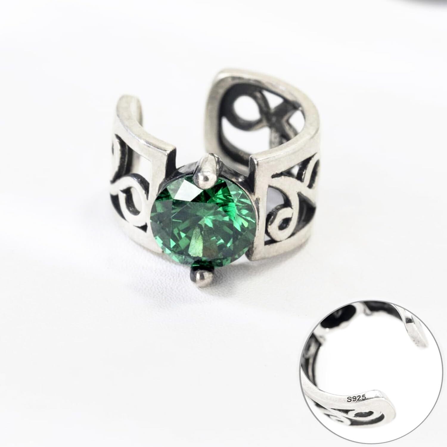 商品の詳細:イヤーカフの外径:約12mm/内径:約10mm。サイズ:幅 7mm 厚さ 1mm。石のサイズ:6mm。素材:シルバー925(刻印有)、合成エメラルド 。付属品:精美な包装ケース