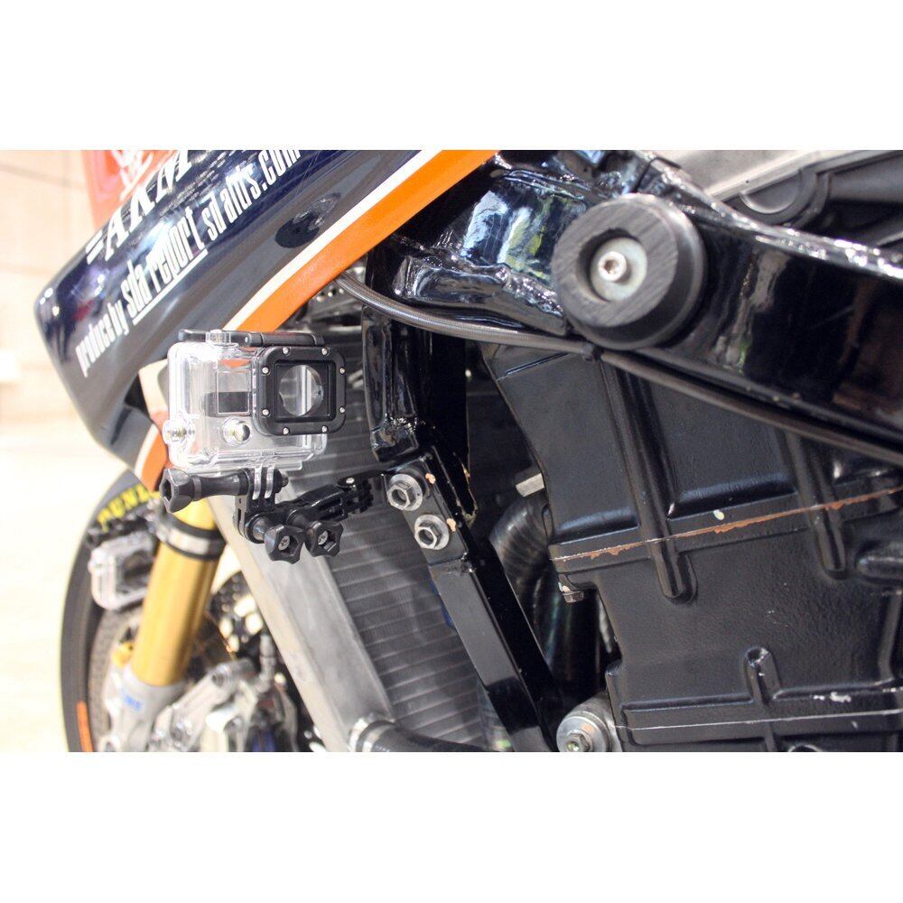 バイクや自転車等のボルトの間に入れて止めるタイプのマウント。仲間とのツーリングや走行動画が撮影可能です。