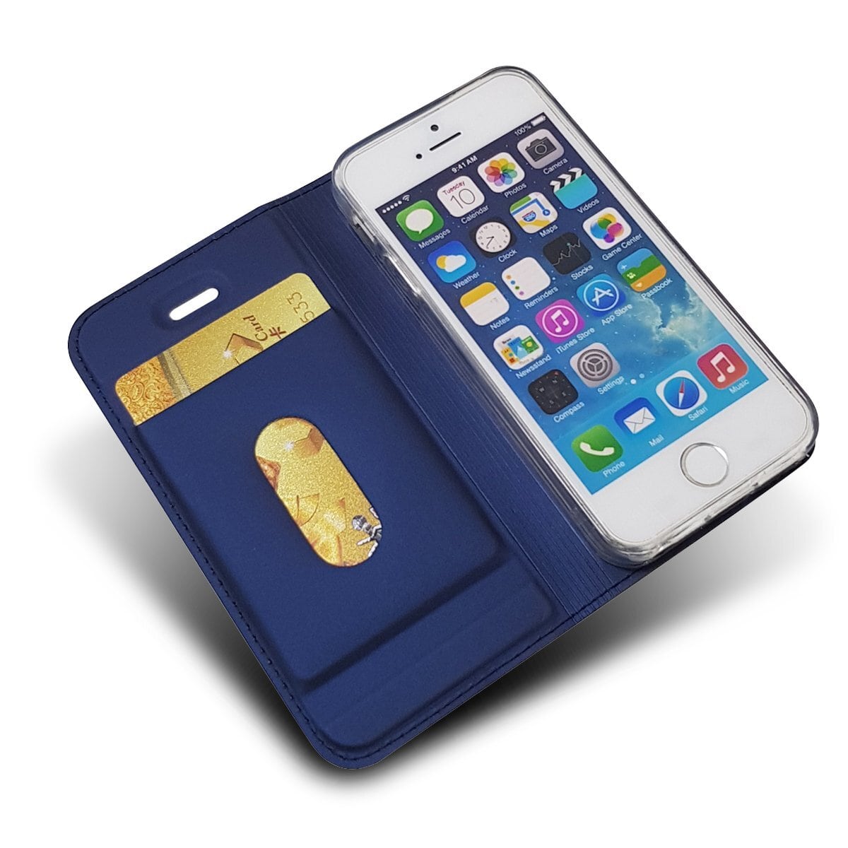 iPhone 5S 5 SE 第一世代のみ SE 2016版 専用 ケース 手帳型 iPhone5 iPhone5s iPhoneSE 2016 用 カバー 【iCoverCase】アイフォン5 5s 内蔵マグネット カードポケット スタンド 軽量 超薄型 ブルー | impsmile