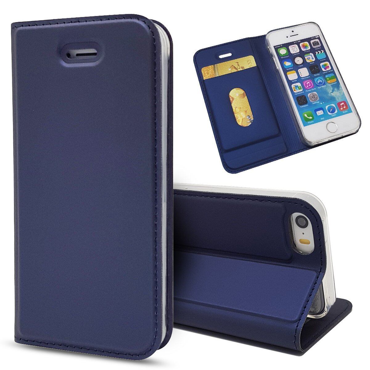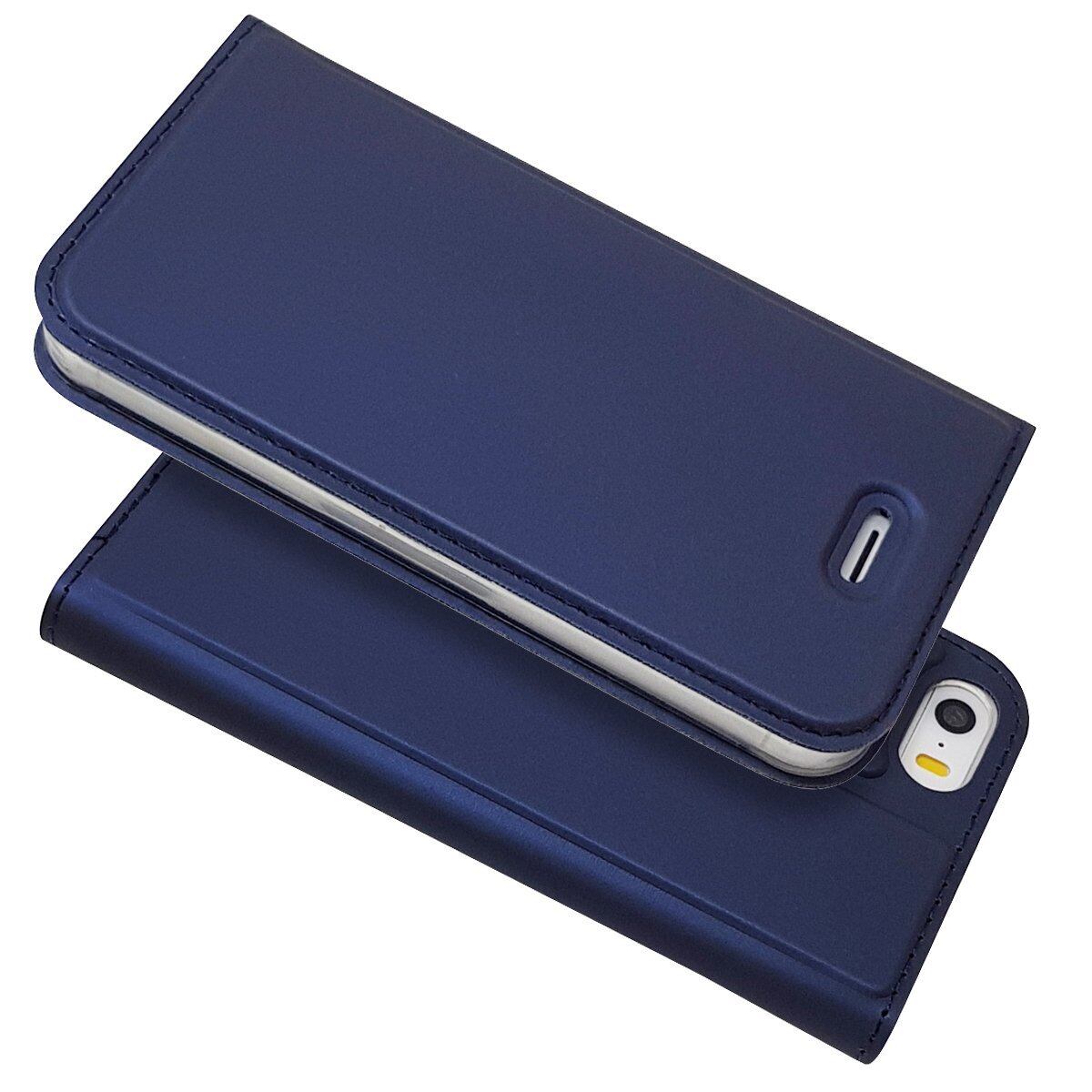 iPhone 5S 5 SE 第一世代のみ SE 2016版 専用 ケース 手帳型 iPhone5 iPhone5s iPhoneSE 2016 用 カバー 【iCoverCase】アイフォン5 5s 内蔵マグネット カードポケット スタンド 軽量 超薄型 ブルー